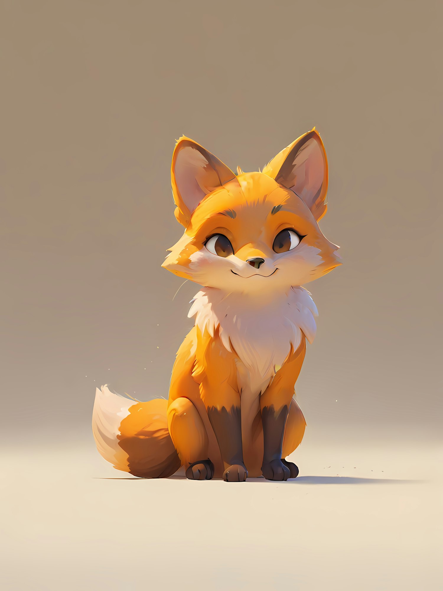 Adorable cartoon fox with orange fur, white accents, and big eyes sitting on a neutral background. Perfect for kids' art or nature themes.