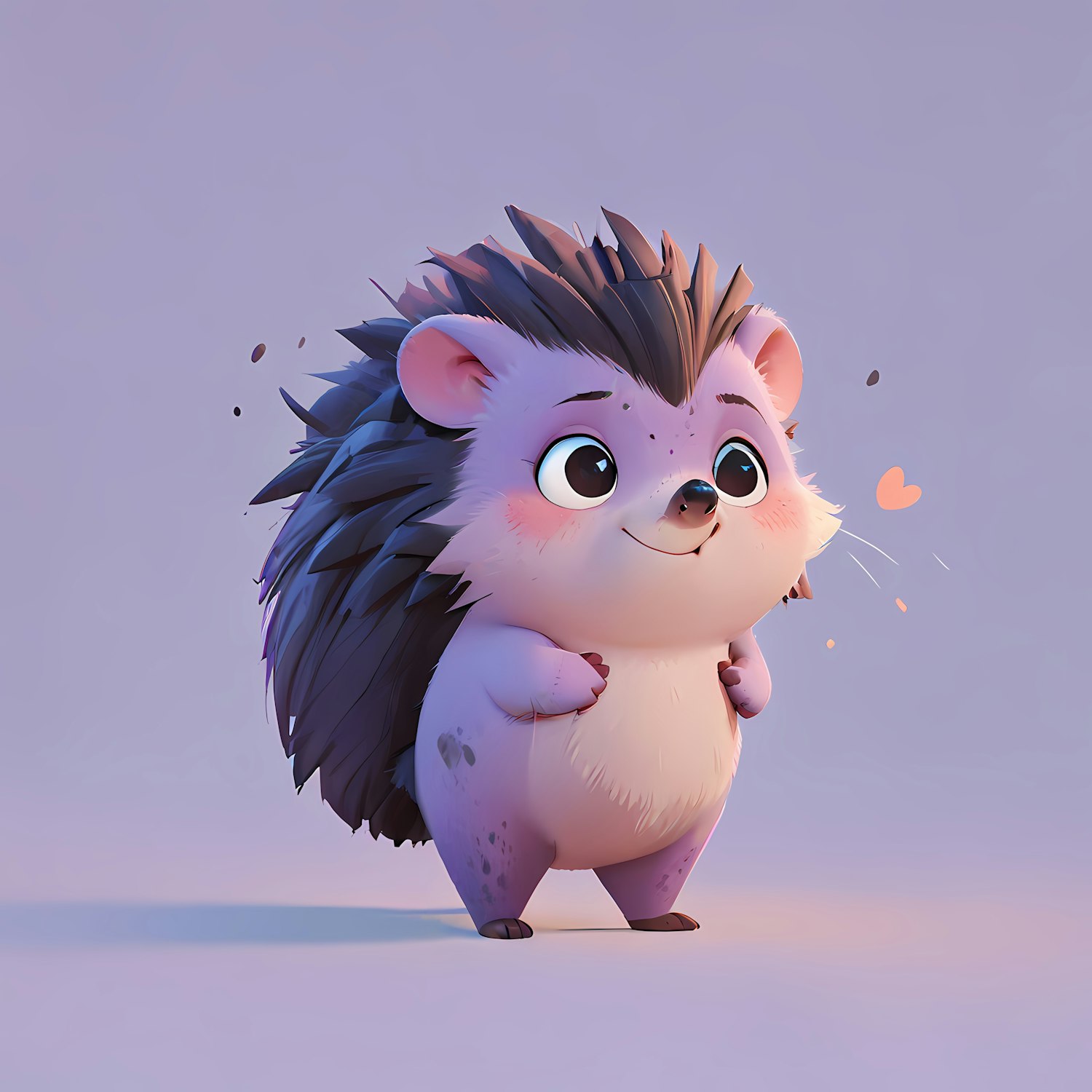 Adorable cartoon hedgehog with big eyes and a heart, set against a soft purple background. Perfect for cute and whimsical designs.