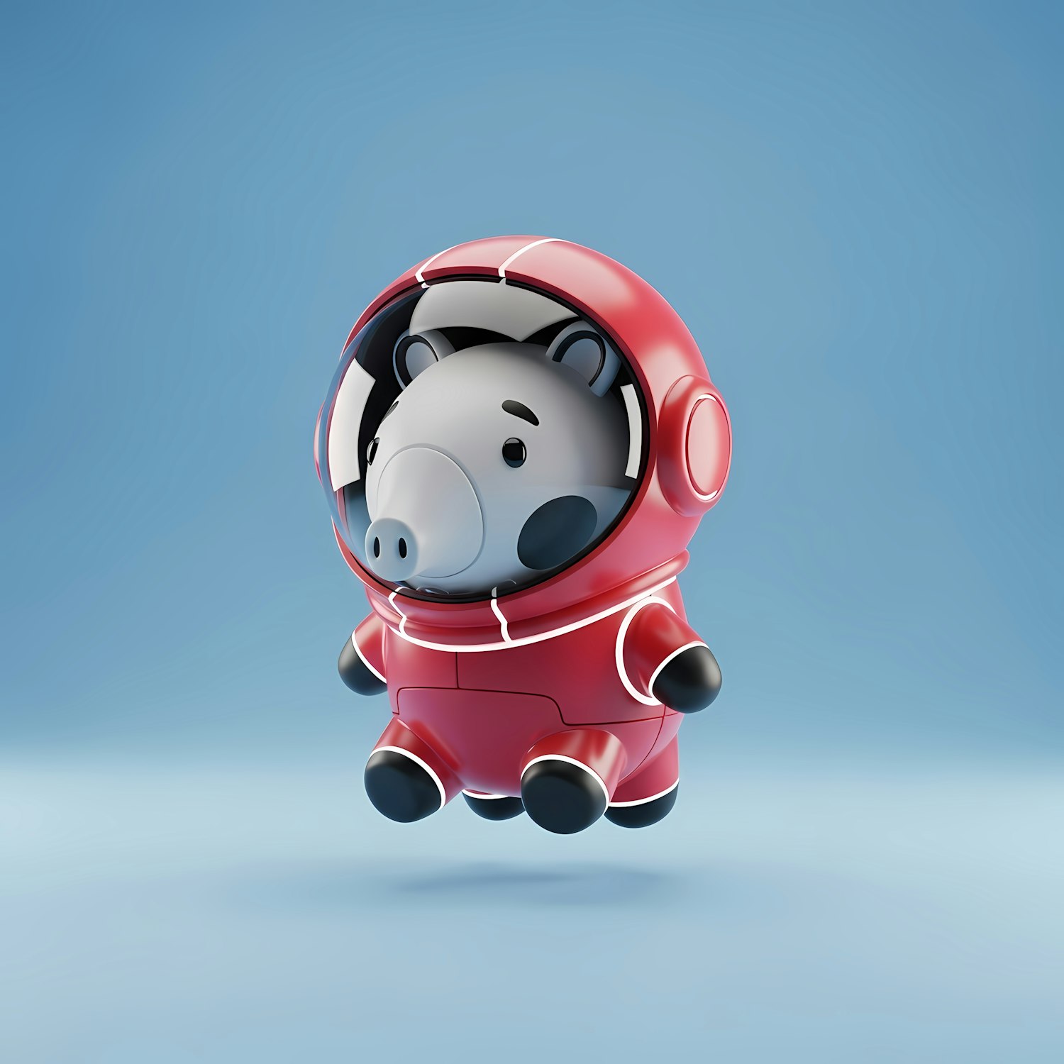 Adorable 3D pig character in a red spacesuit floating in a zero-gravity environment, perfect for space-themed designs.