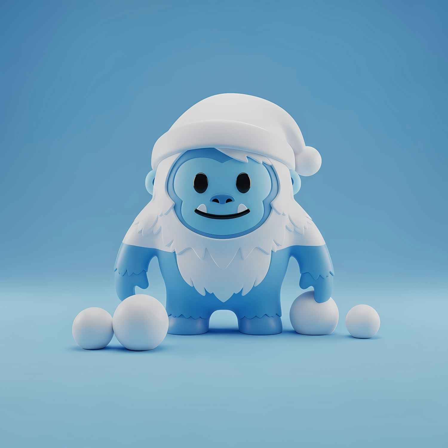 Adorable blue yeti with a Santa hat and snowballs on a light blue background, perfect for a fun winter or holiday theme.
