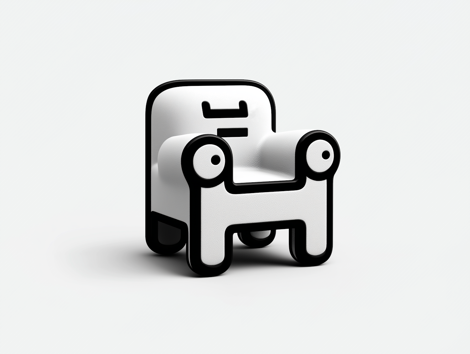 A playful, cartoonish white chair with bold black outlines and rounded armrests, perfect for modern and minimalist interiors.