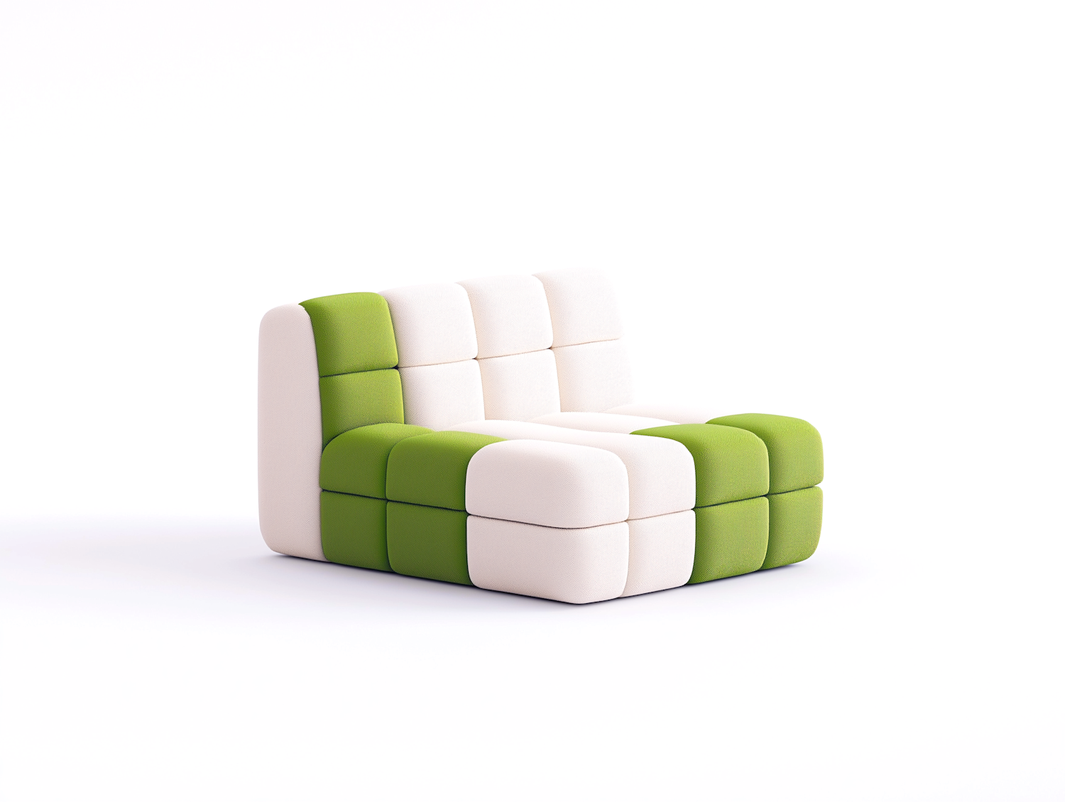 Modern modular sofa with green and white checkerboard design, plush cushions, and minimalist style. Perfect for contemporary interiors.