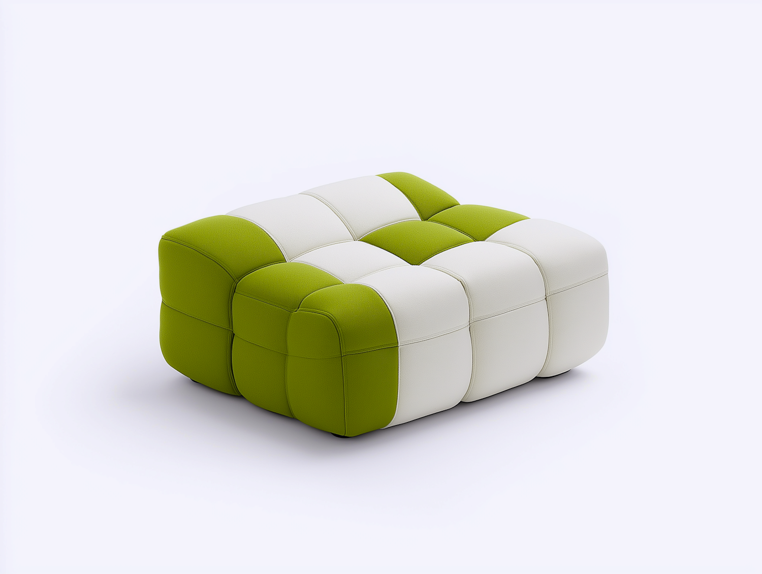 Modern green and white checkerboard ottoman with soft, rounded edges and a plush design, perfect for contemporary interiors.