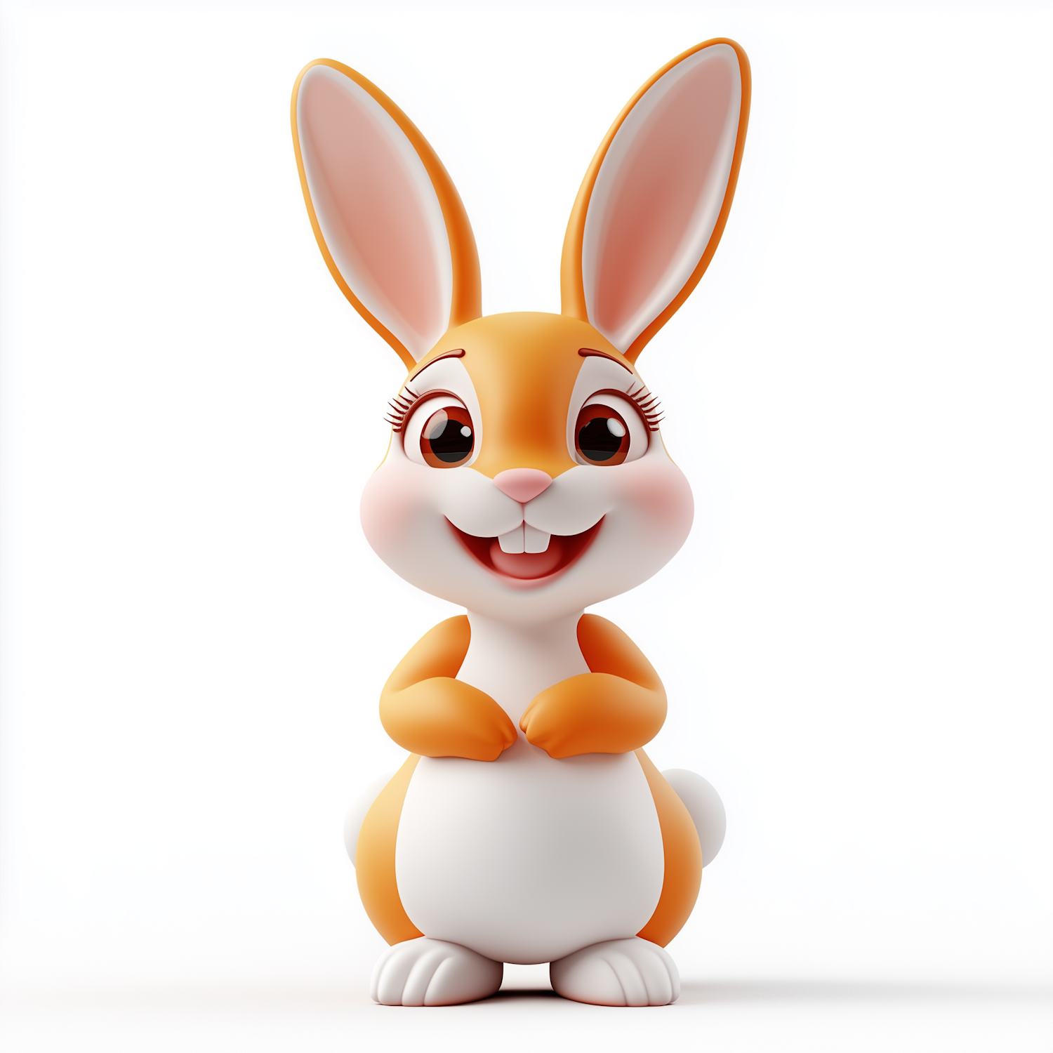 Adorable cartoon bunny with orange and white fur, big brown eyes, and a cheerful smile. Perfect for kids' content or playful designs.