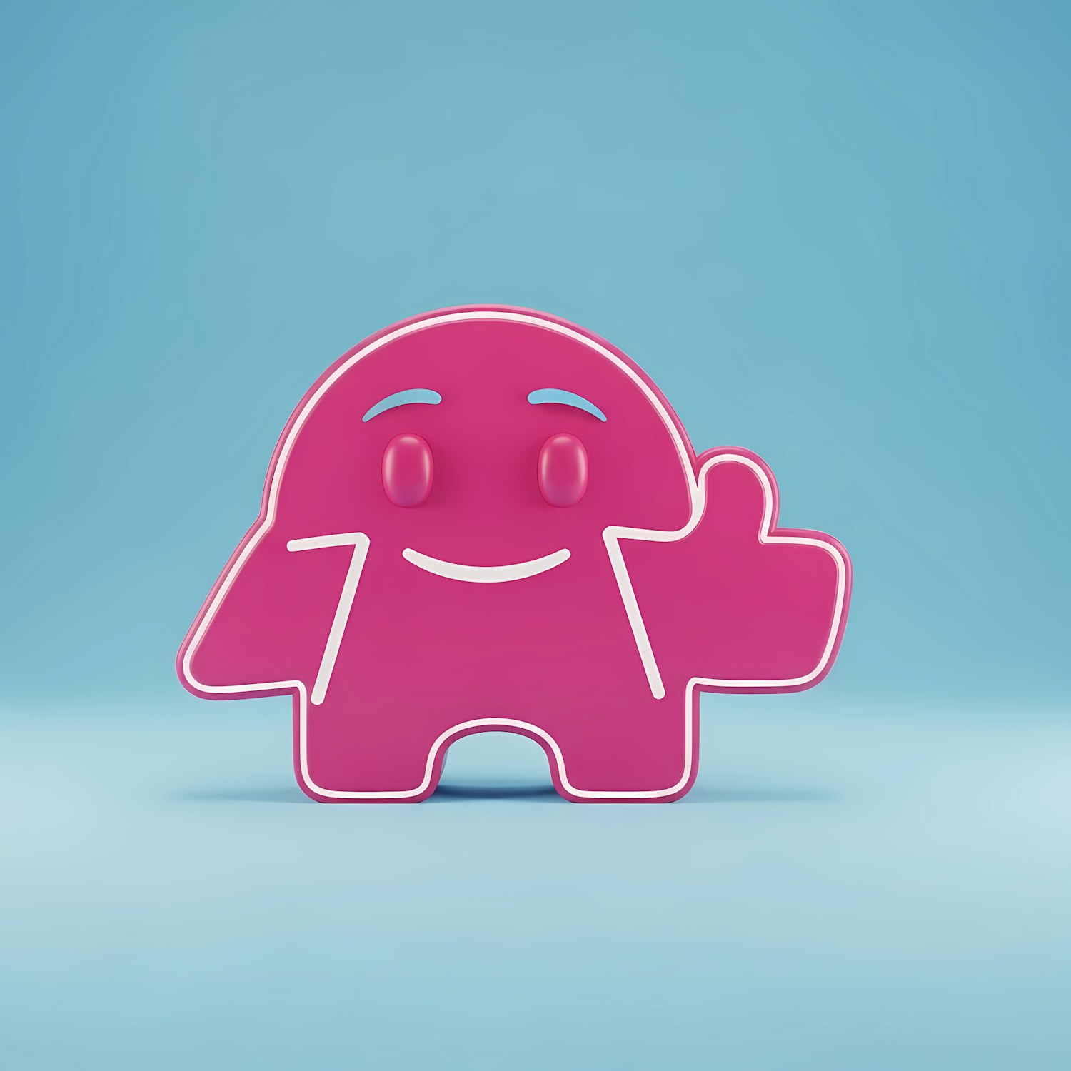 Cute pink cartoon character giving a thumbs-up, set against a light blue background. Perfect for fun and cheerful designs.