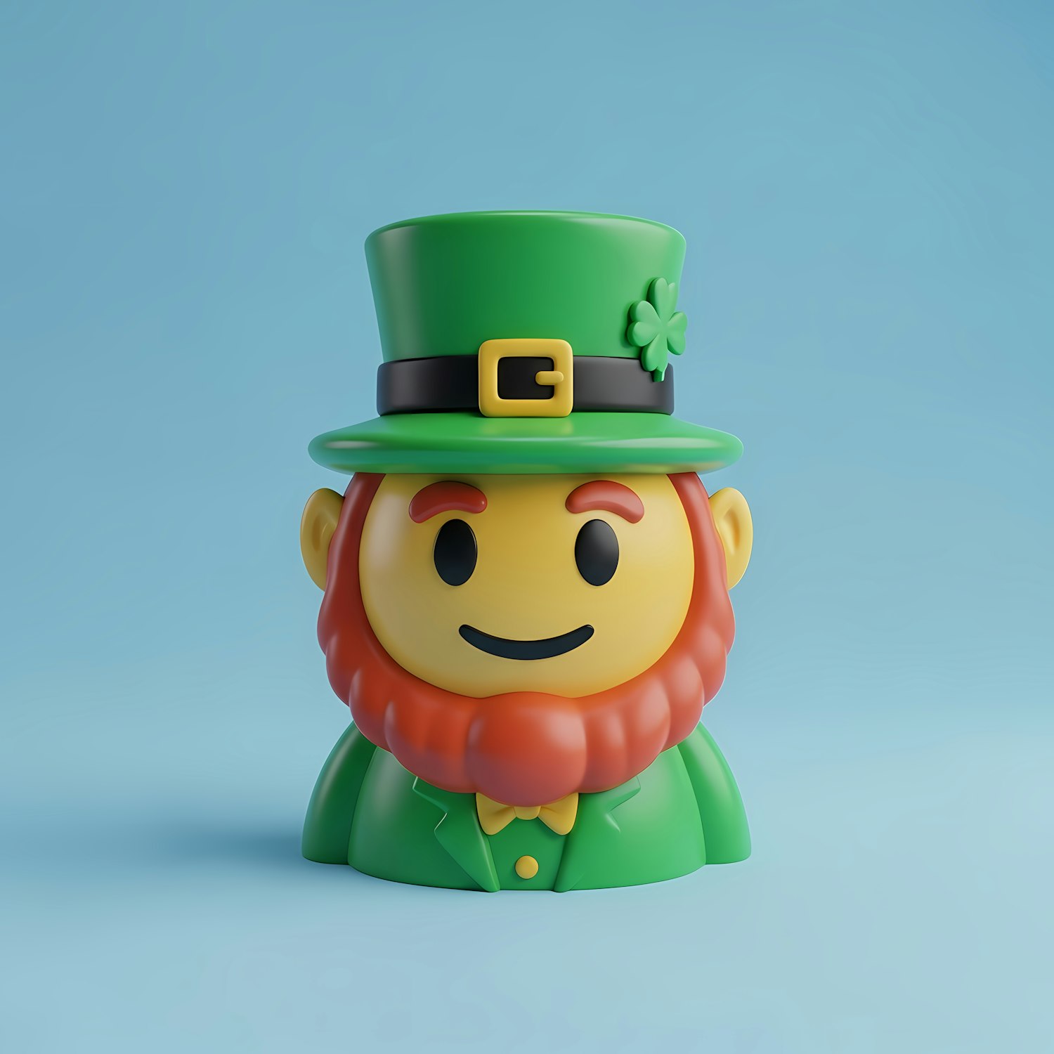 Cute 3D leprechaun character with a green hat, red beard, and a cheerful smile, perfect for St. Patrick's Day themes.