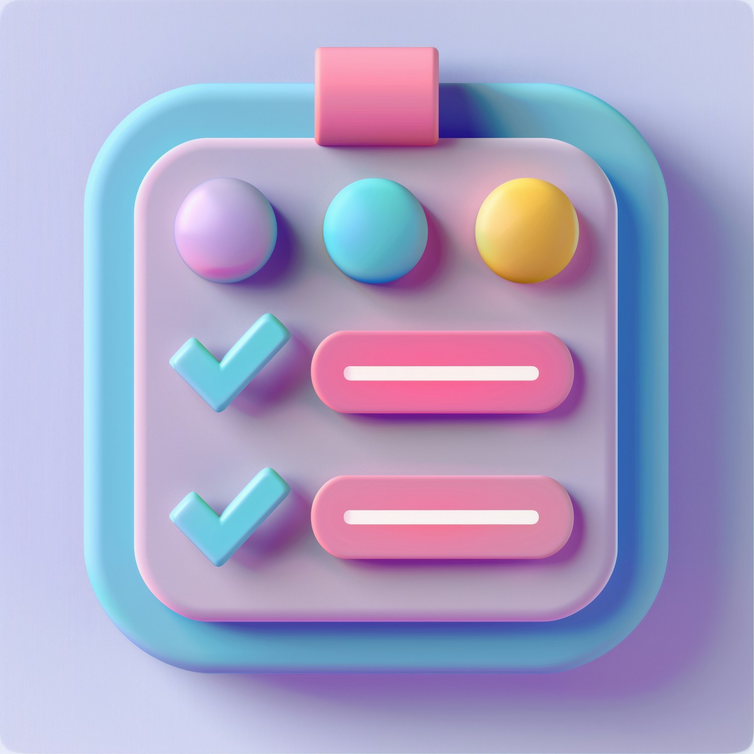3D illustration of a colorful checklist icon with pastel buttons and check marks, featuring a modern and playful design.