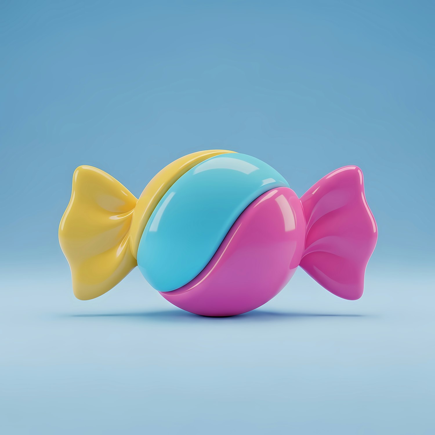 Bright 3D candy with yellow, pink, and blue tones on a light blue background, perfect for playful and colorful designs.