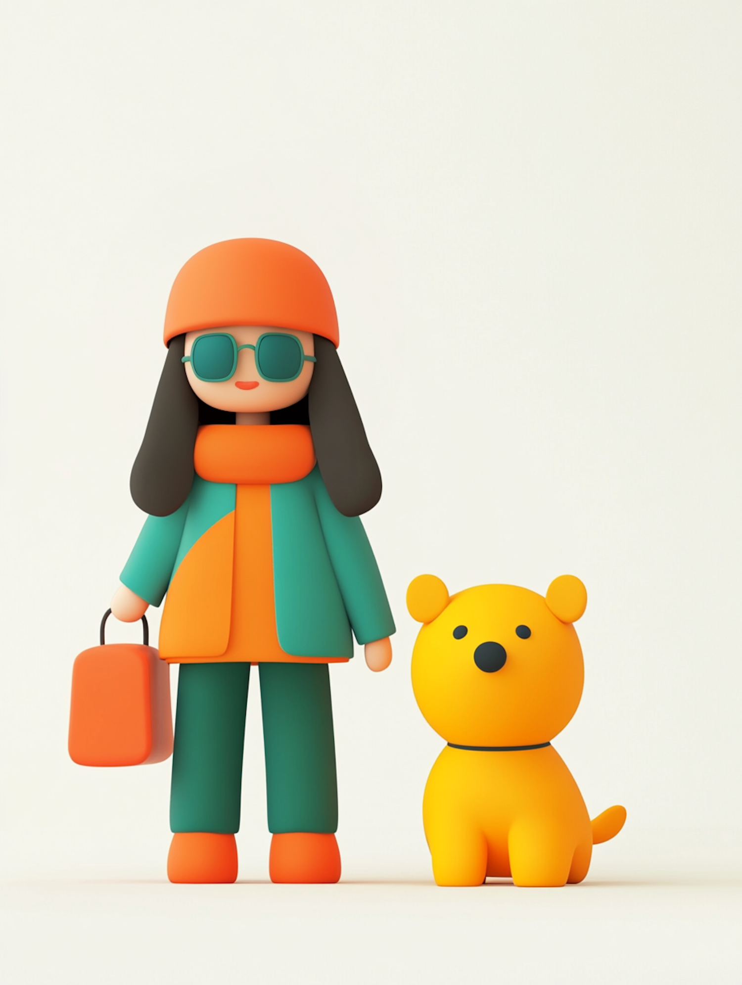Colorful illustration of a person in orange and teal attire with a yellow cartoon dog, set against a light background.