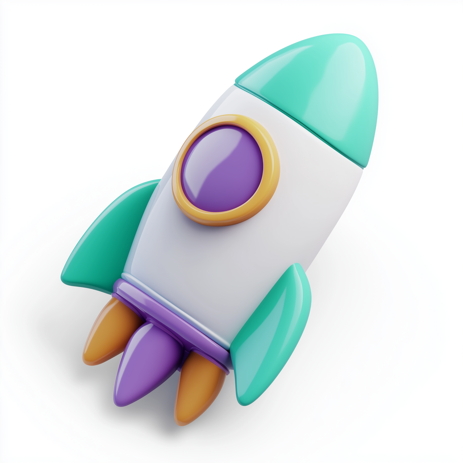 A vibrant 3D rocket toy with teal, purple, and orange accents, perfect for playful and creative designs or kids' themes.