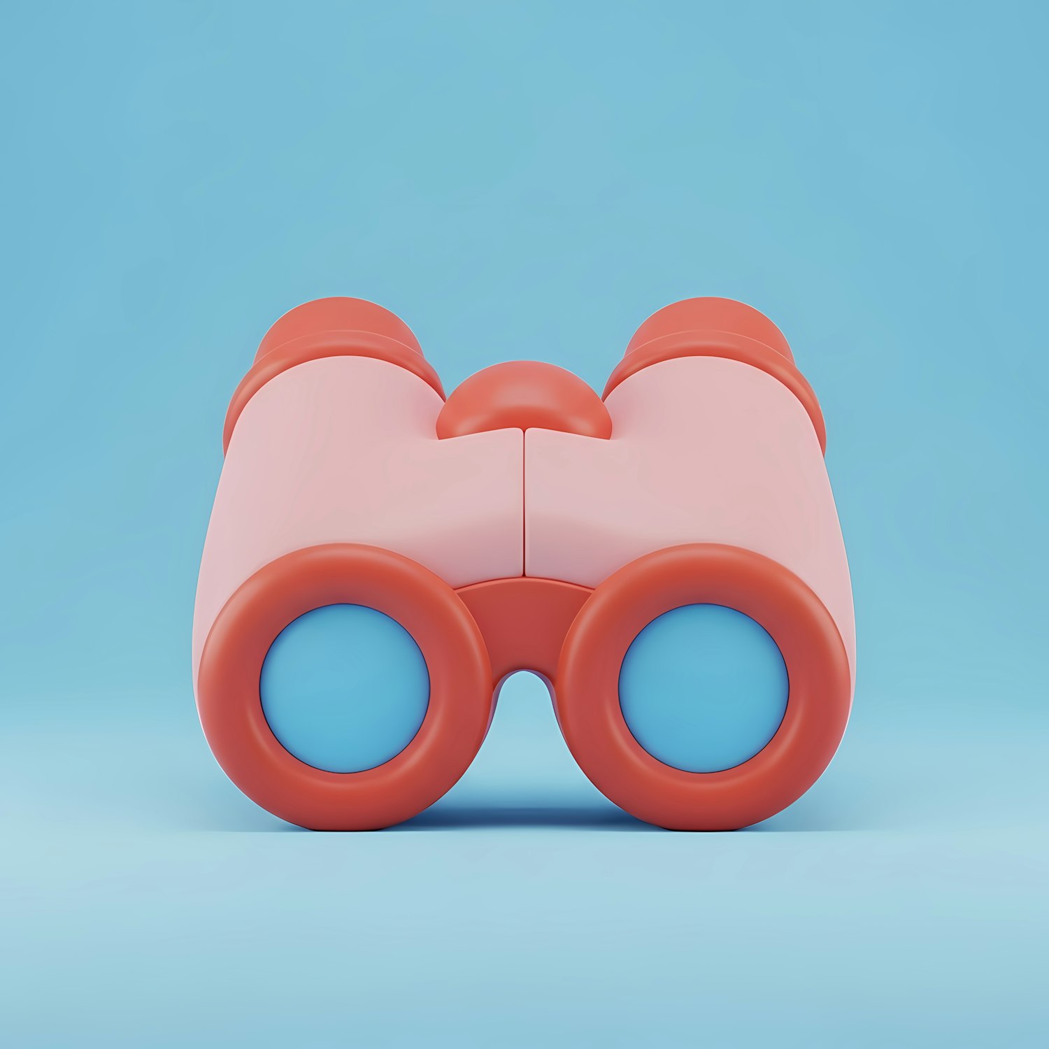 Brightly colored toy binoculars with pink, red, and blue accents on a light blue background, perfect for kids' play or decor.