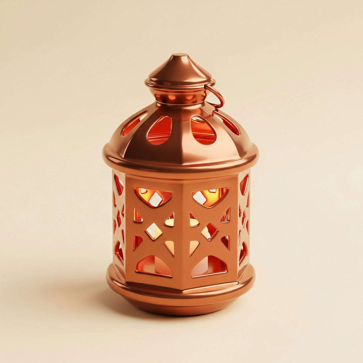 A copper-finished lantern with intricate cut-outs and a warm glow, perfect for adding a cozy touch to any space.