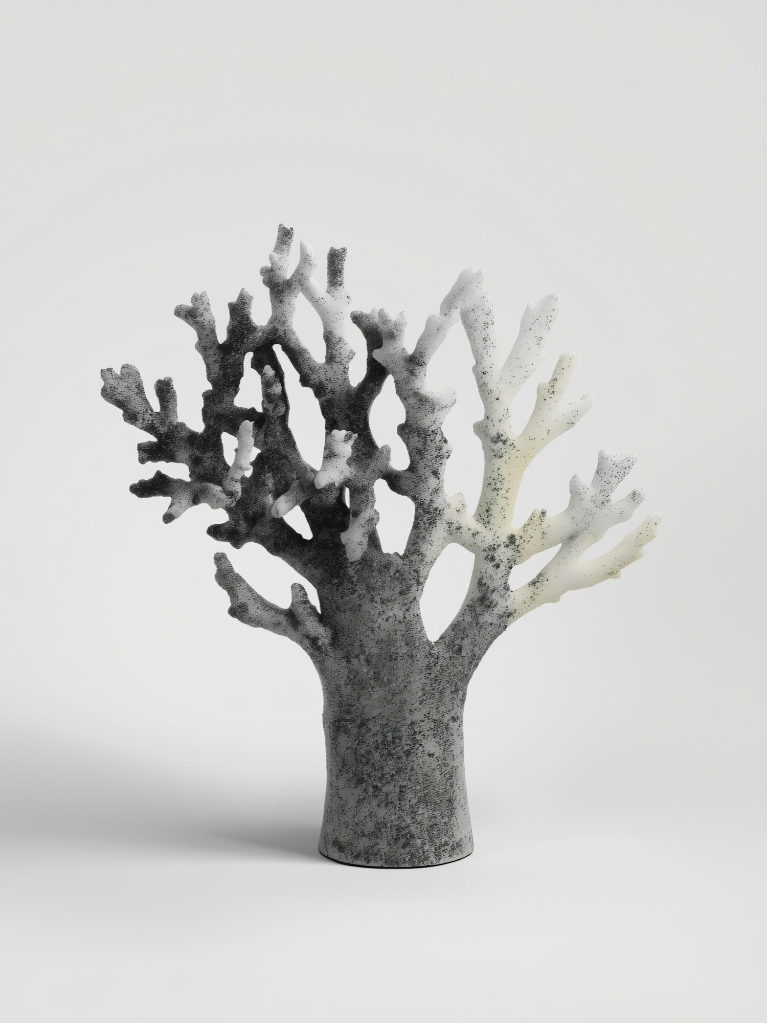 A modern coral-inspired sculpture with a textured black-to-white gradient, perfect for minimalist and artistic decor.