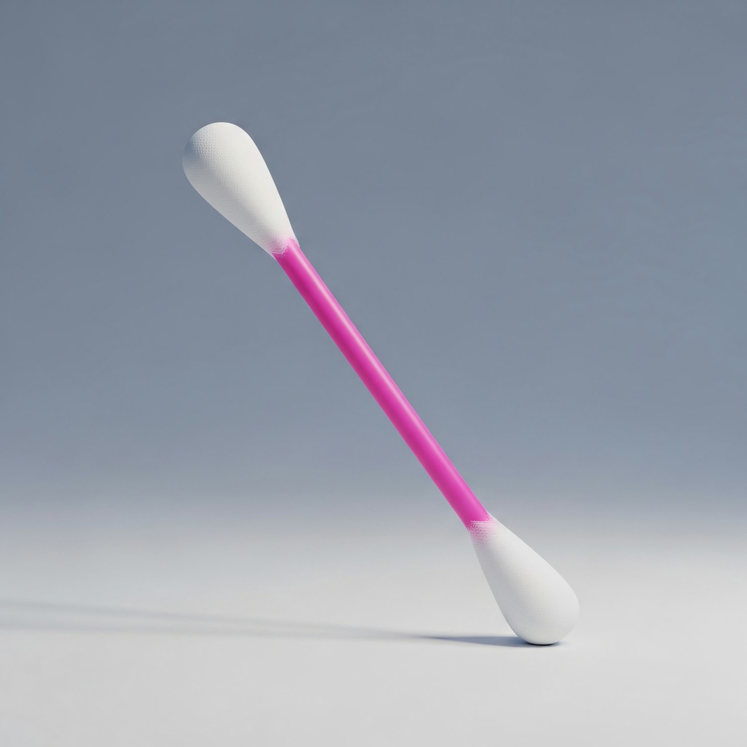 A vibrant pink-handled cotton swab with white tips, set against a gradient background, showcasing its clean and modern design.
