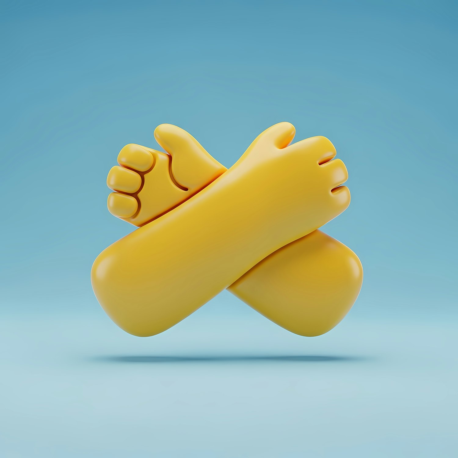3D illustration of two yellow cartoon arms crossed in an 'X' shape on a light blue background, creating a playful and bold visual.