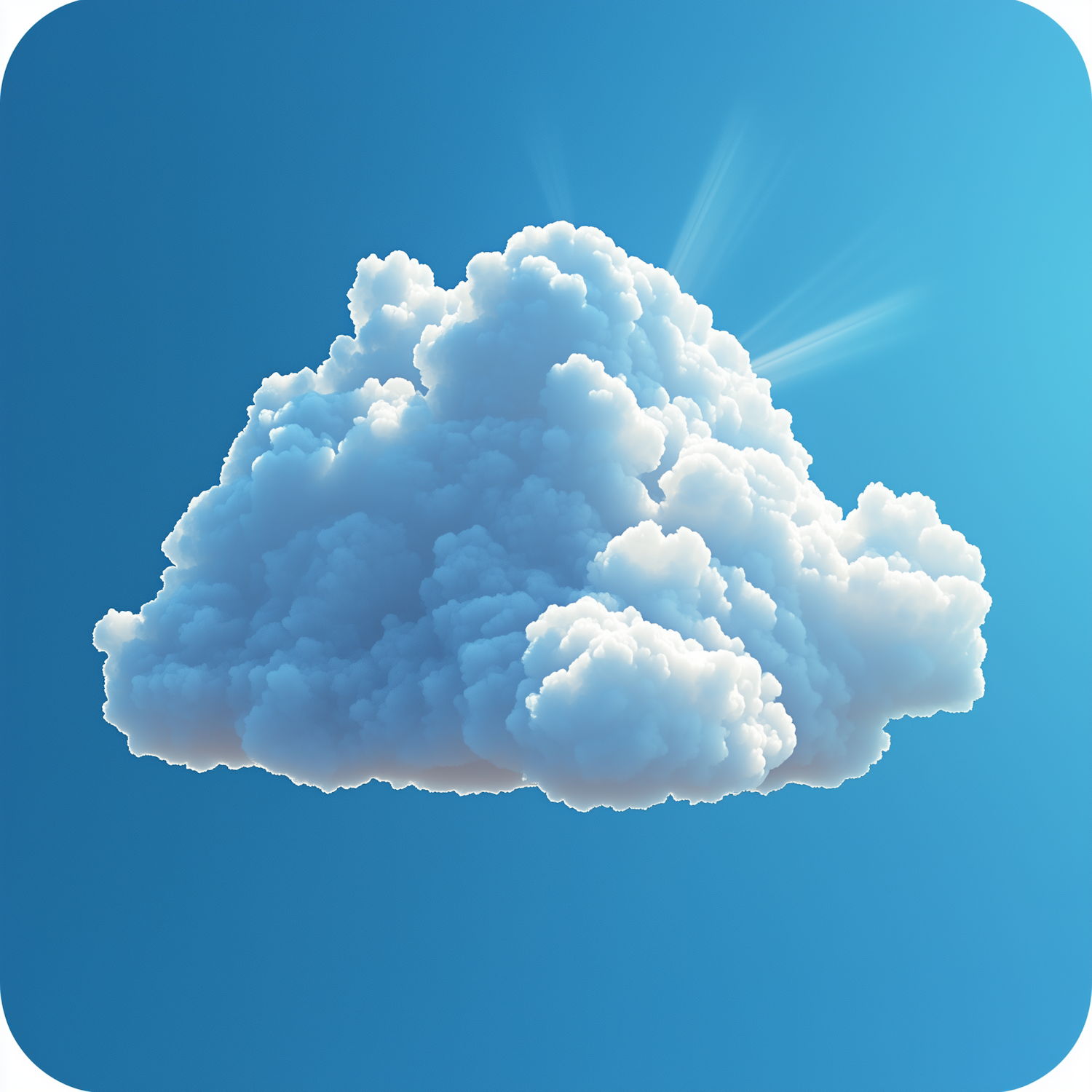 A single fluffy white cloud in a vibrant blue sky with sunlight streaming through, creating a serene and minimalistic scene.