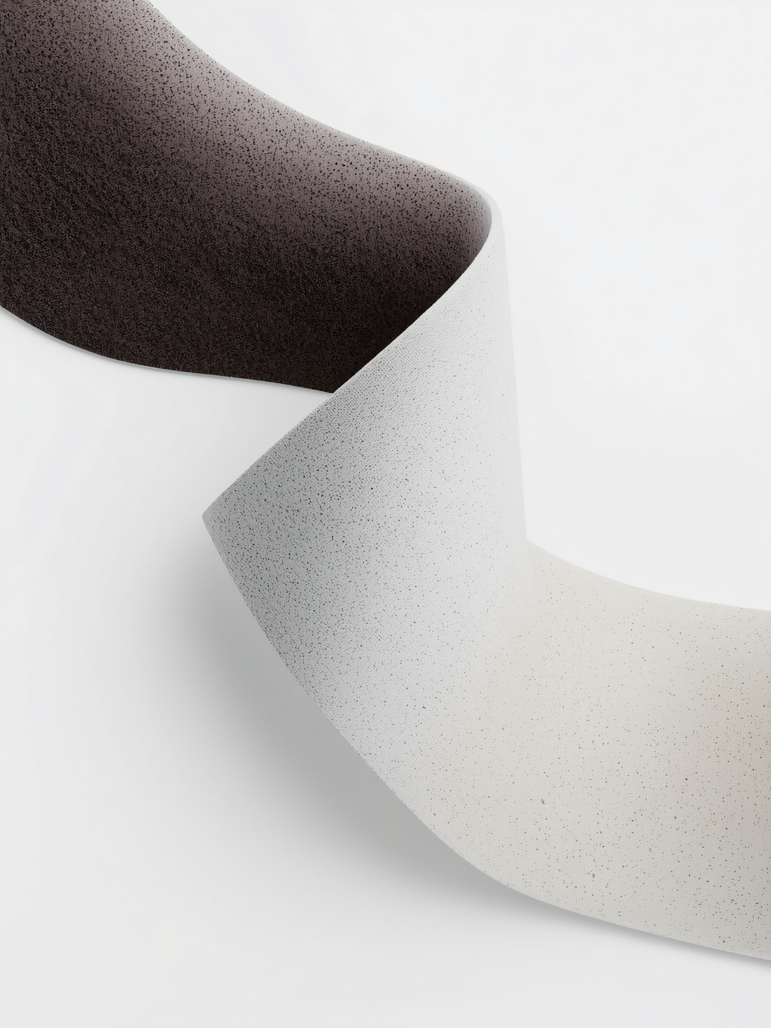 A textured, gradient ribbon-like surface transitioning from dark gray to beige, set against a clean white background.