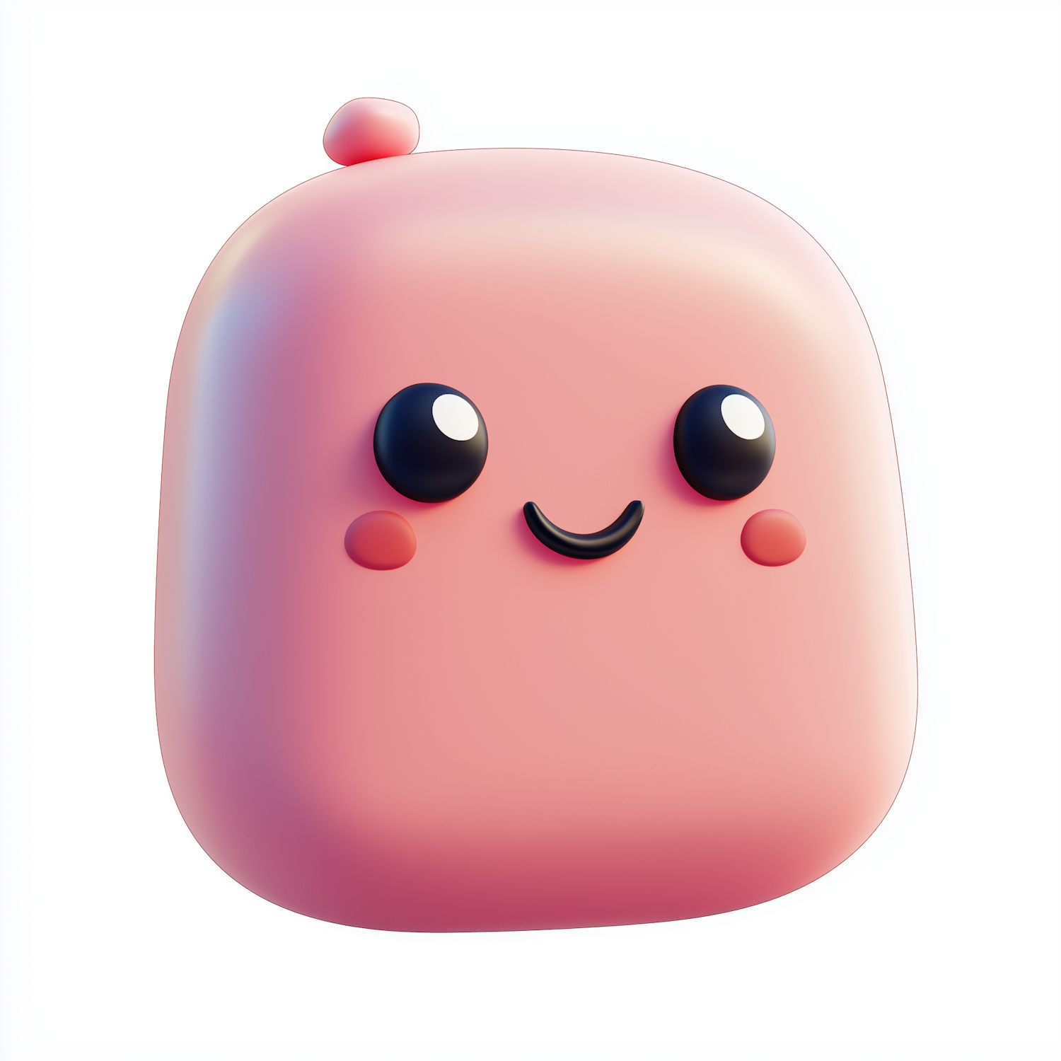 Adorable 3D pink cube character with big eyes and a cute smile, perfect for children's content or playful designs.