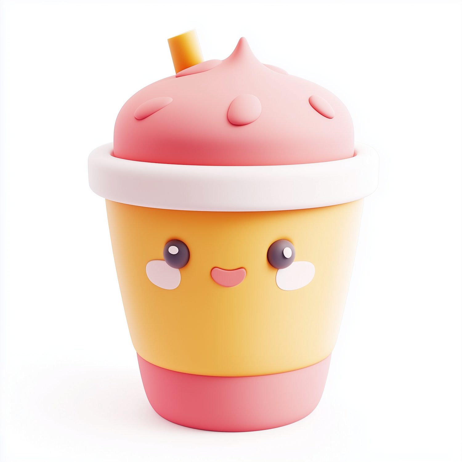 Adorable cartoon cup with a smiling face, pink lid, and yellow straw. Perfect for adding a touch of whimsy to any design.