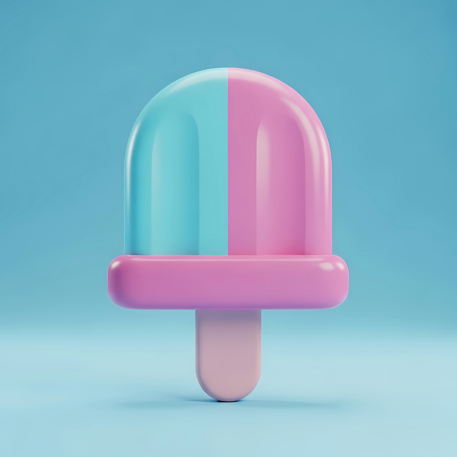 A vibrant 3D-rendered popsicle with pink and blue halves on a light blue background, perfect for a fun and modern design.