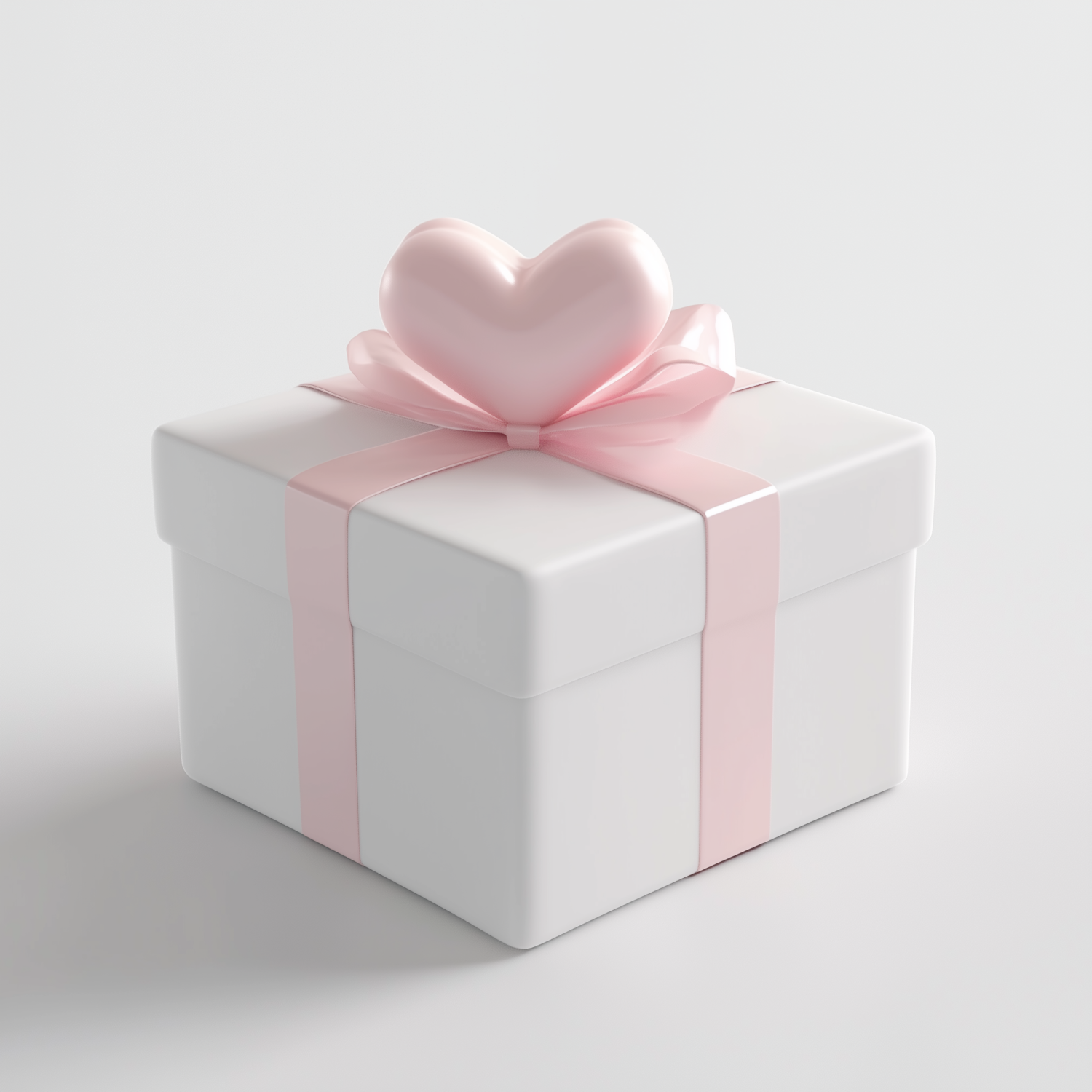 Elegant white gift box with a pink ribbon and heart-shaped topper, perfect for romantic occasions like Valentine's Day or anniversaries.