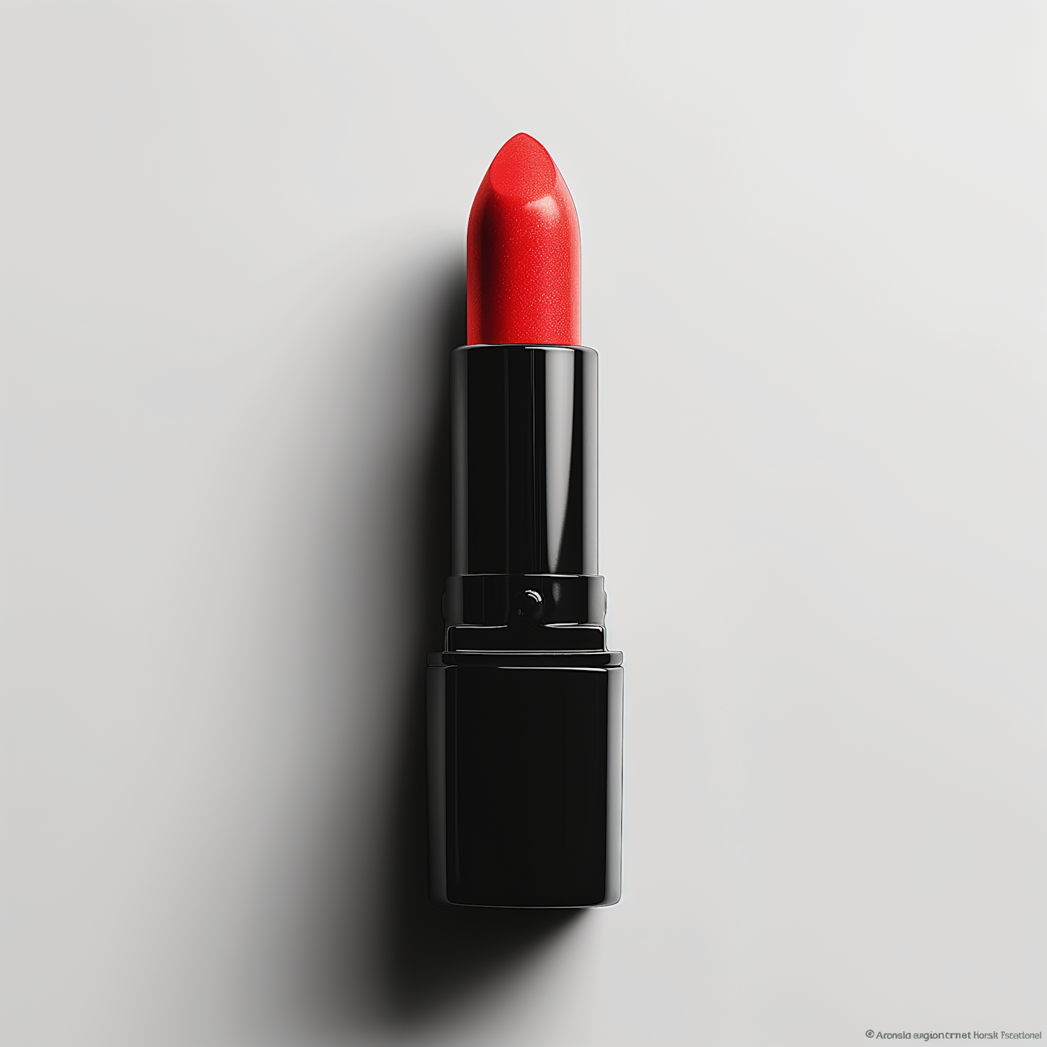 Elegant red lipstick in a sleek black tube on a light gray background, highlighting its bold color and glossy finish.