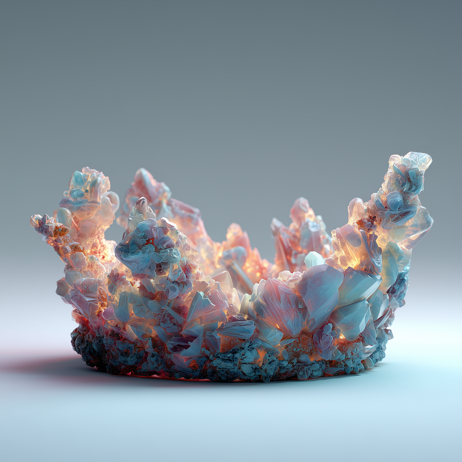 A stunning 3D-rendered crystalline crown with glowing pastel hues, showcasing intricate details and a radiant, ethereal design.