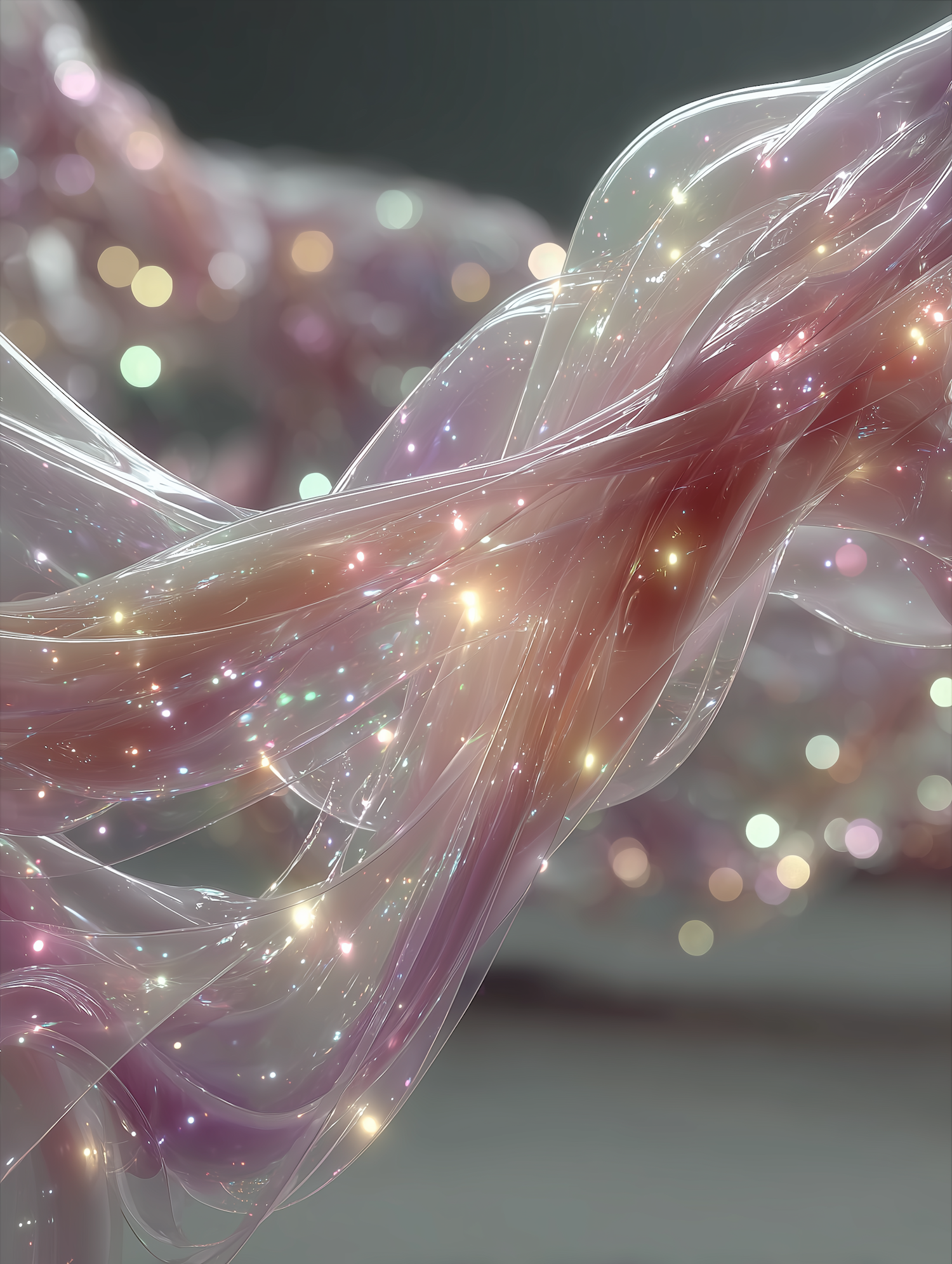 Abstract flowing ribbons with pastel hues and sparkling lights create a magical, ethereal visual experience.