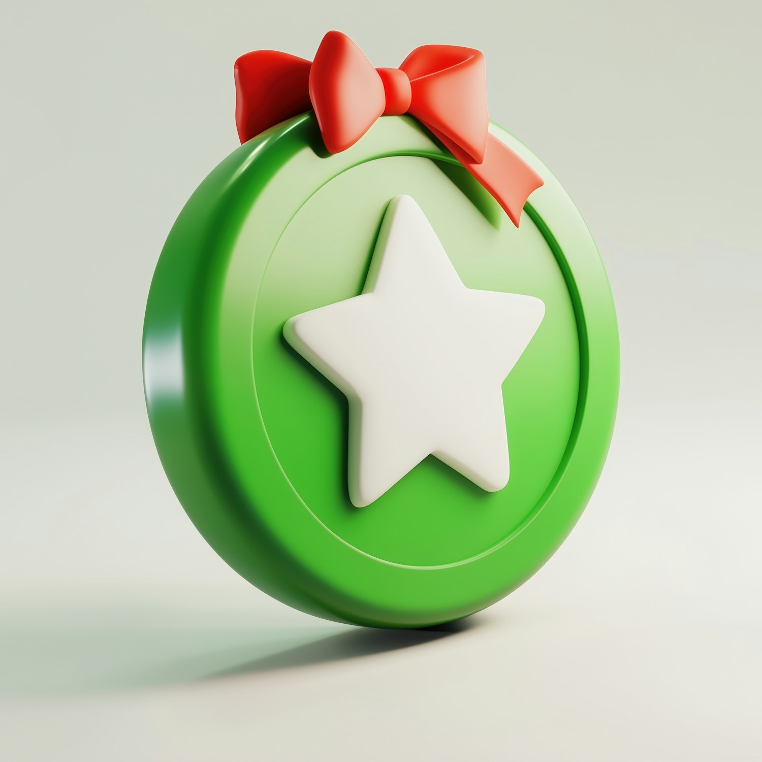 A festive green badge with a white star and a red bow, perfect for celebrating achievements or holiday-themed designs.