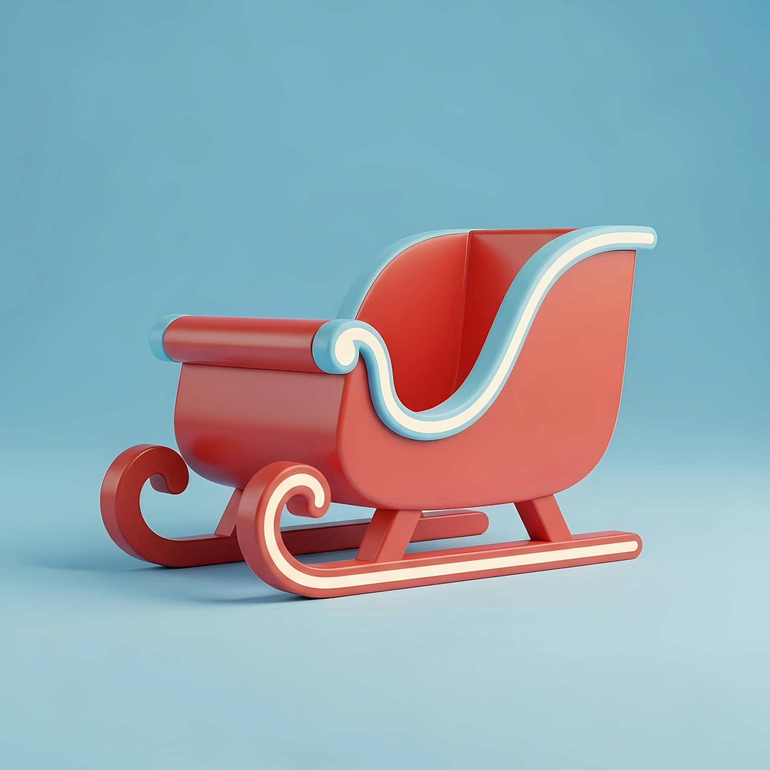 A vibrant red sleigh with white accents on a light blue background, perfect for festive and holiday-themed designs.