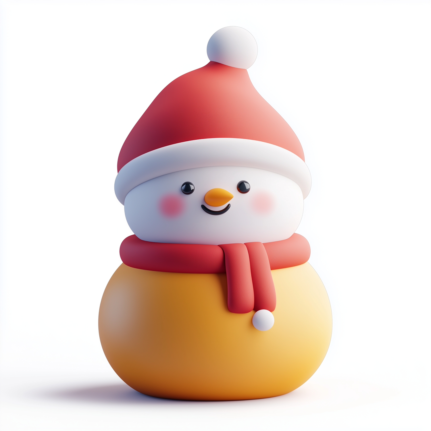 Adorable cartoon snowman with a red Santa hat and scarf, featuring a cheerful smile and rosy cheeks on a white background.