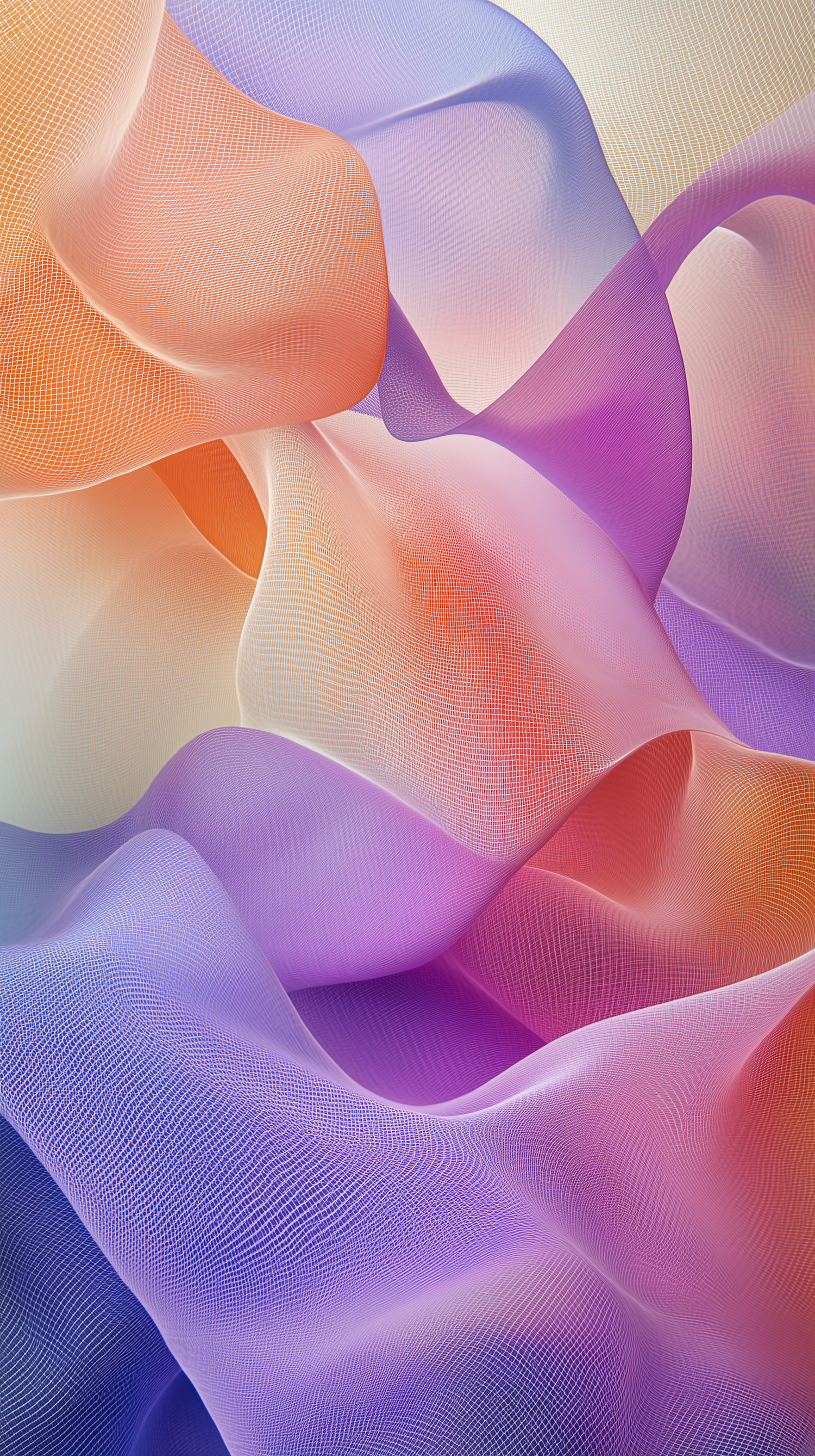 Abstract mesh waves in vibrant gradient colors of orange, pink, purple, and blue, creating a dynamic and fluid visual effect.