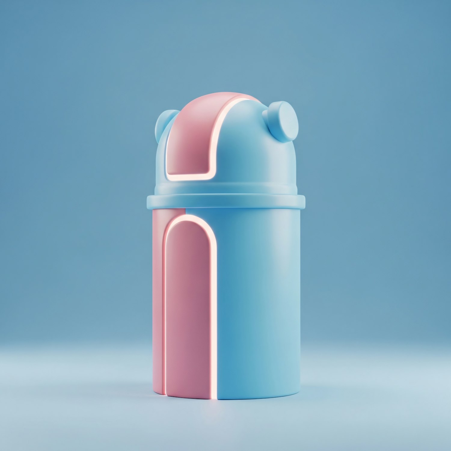 A pastel blue and pink futuristic 3D object with glowing accents, set against a light blue background, showcasing modern design.