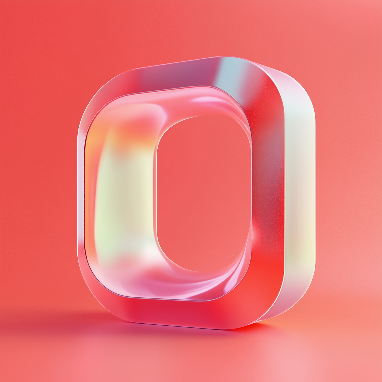 A glossy, semi-transparent 3D object with soft pink and yellow gradients on a coral background, showcasing a modern and minimal design.