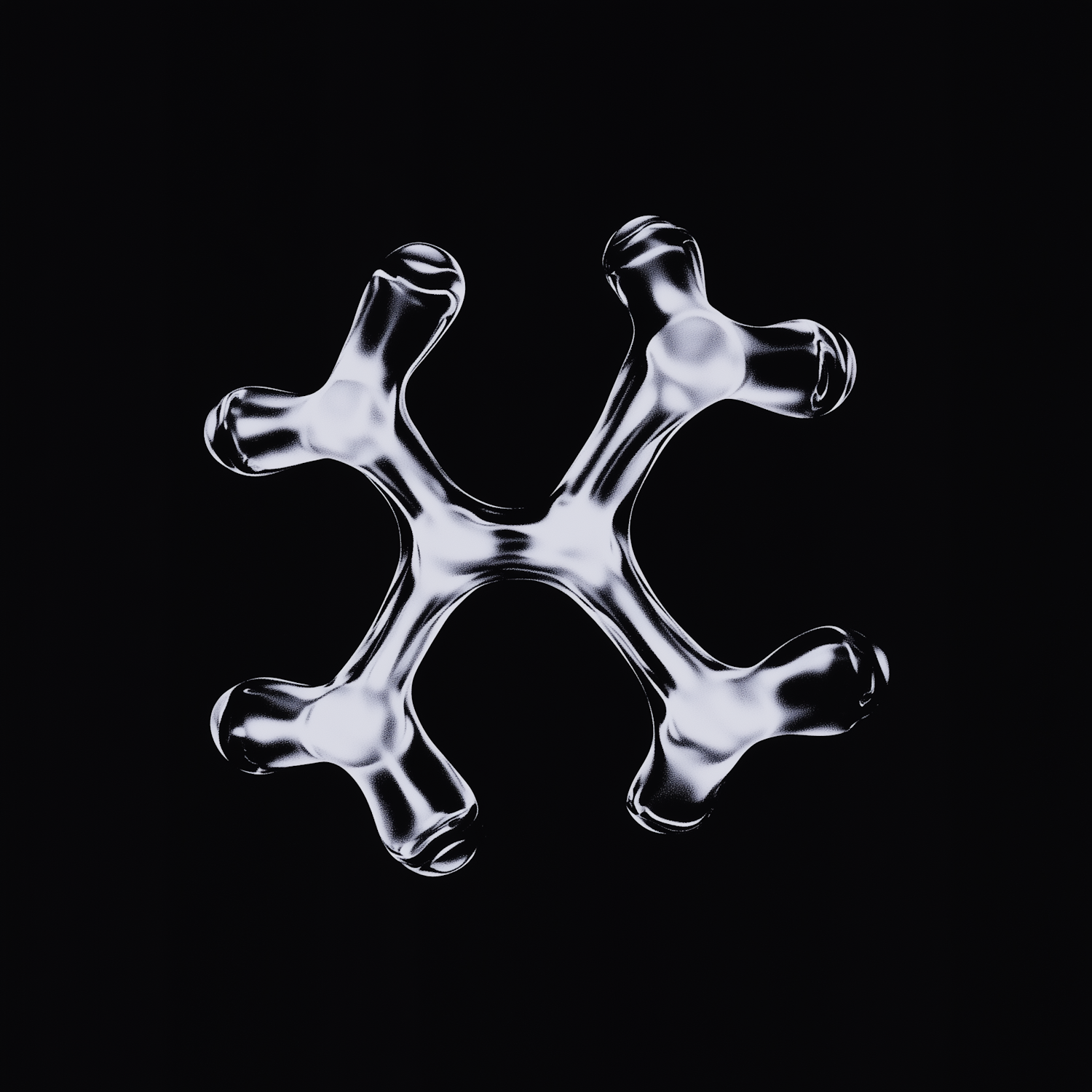 A futuristic 3D-rendered molecular-like structure with a glossy, translucent finish, floating against a black background.