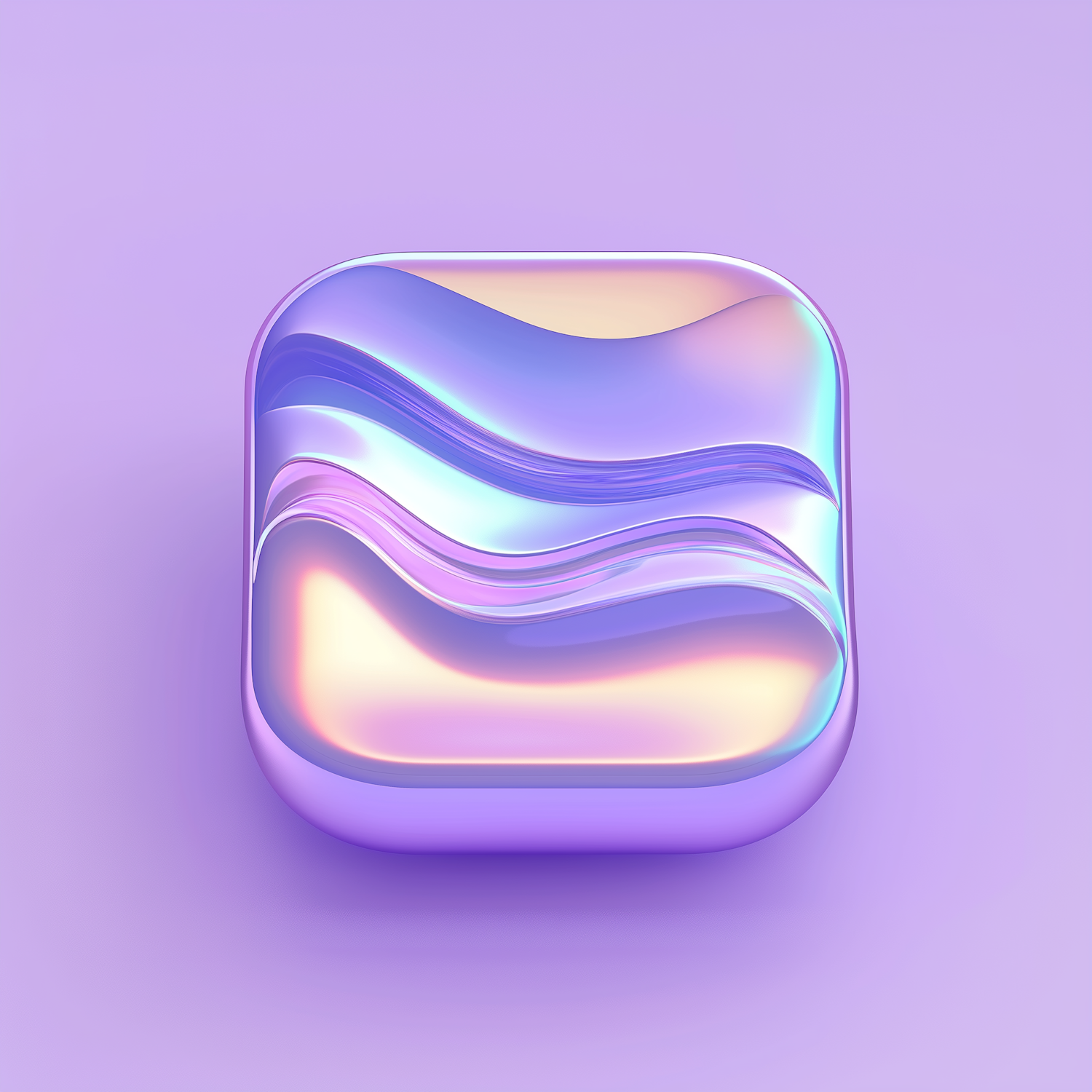 Glossy 3D abstract square with pastel waves in purple, pink, and gold hues on a lavender background. Futuristic and minimal design.