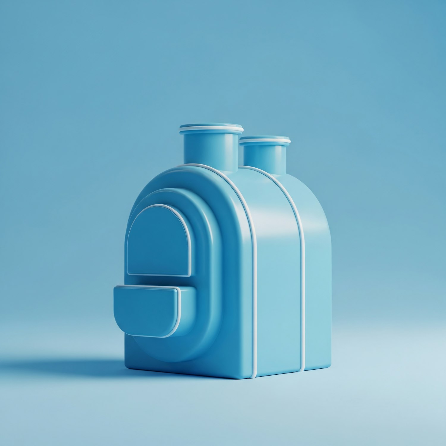 A sleek, light blue 3D-rendered object with a modern design, featuring rounded edges and a minimalistic aesthetic on a blue background.