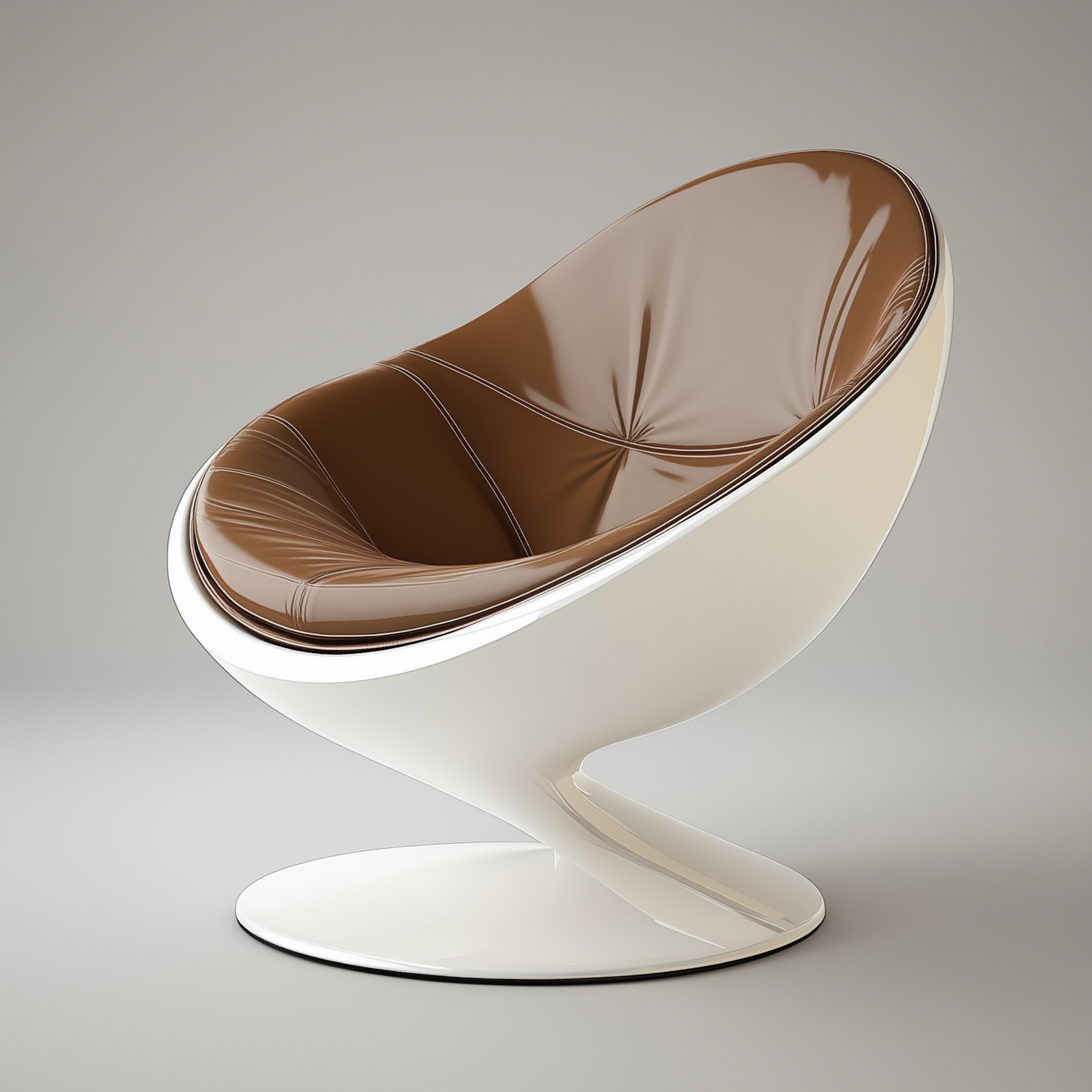Sleek modern chair with a glossy white base and caramel-brown leather seat, perfect for contemporary interiors.