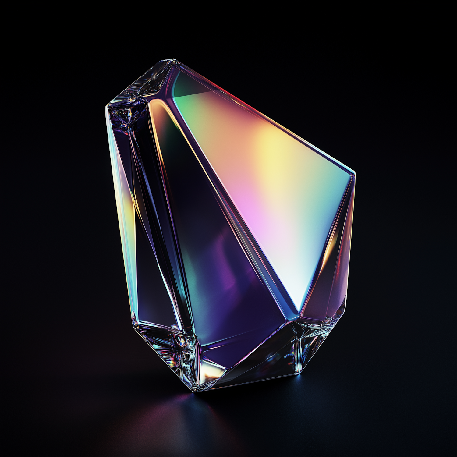 A stunning angular crystal reflecting vibrant rainbow hues on a dark background, showcasing its sleek, futuristic design.