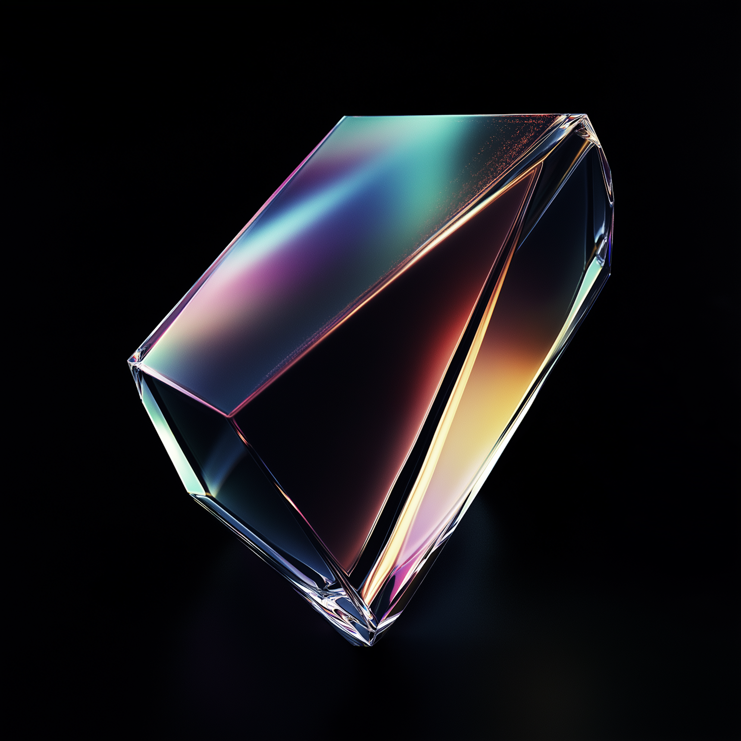 A futuristic crystal with sharp facets and a holographic gradient, floating against a black background. Perfect for modern, abstract designs.