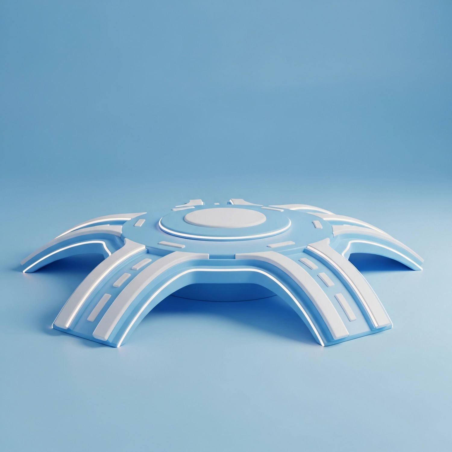 A sleek, futuristic dome-like structure with curved extensions, set against a minimalistic light blue background.
