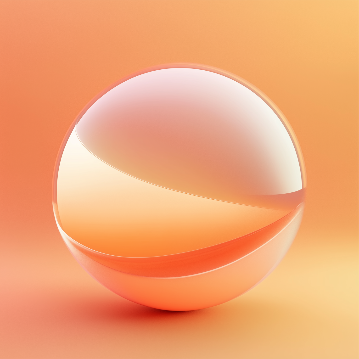 A glossy, semi-transparent sphere with warm orange tones and a futuristic design against a gradient orange background.