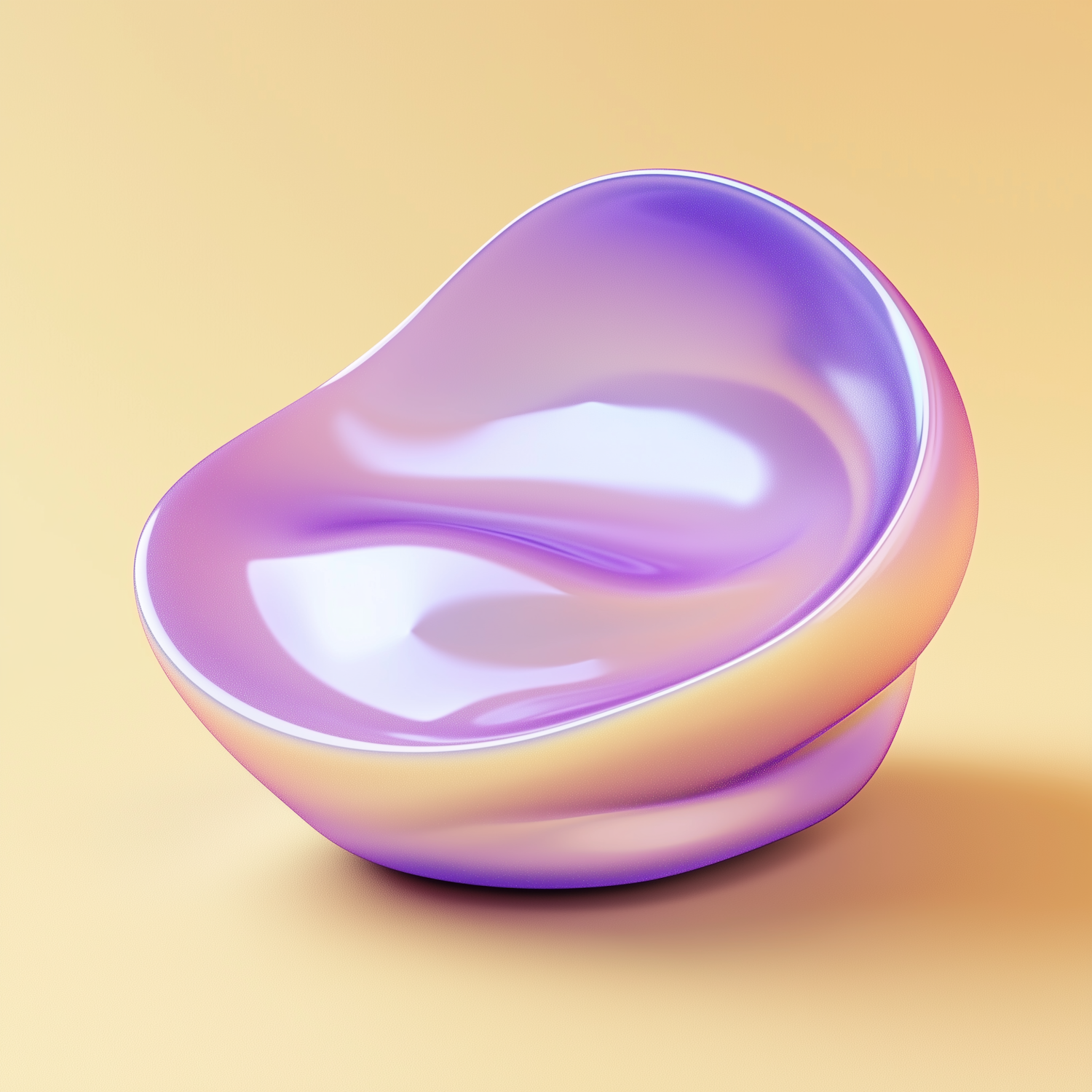 A glossy, futuristic chair with a purple-to-yellow gradient and smooth, organic design, set against a warm yellow background.