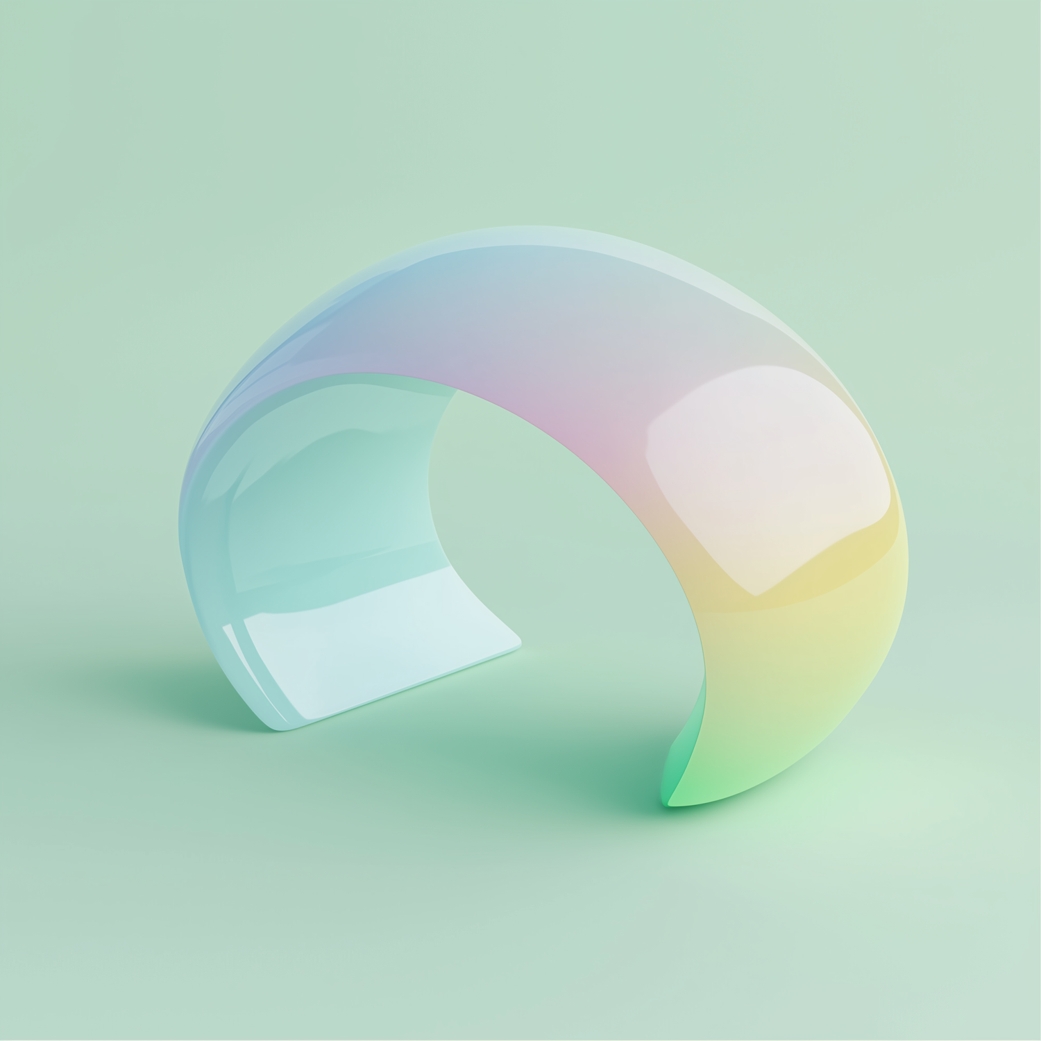 A glossy, pastel-gradient 3D arc on a mint-green background, blending soft pinks, greens, and yellows in a minimalistic design.