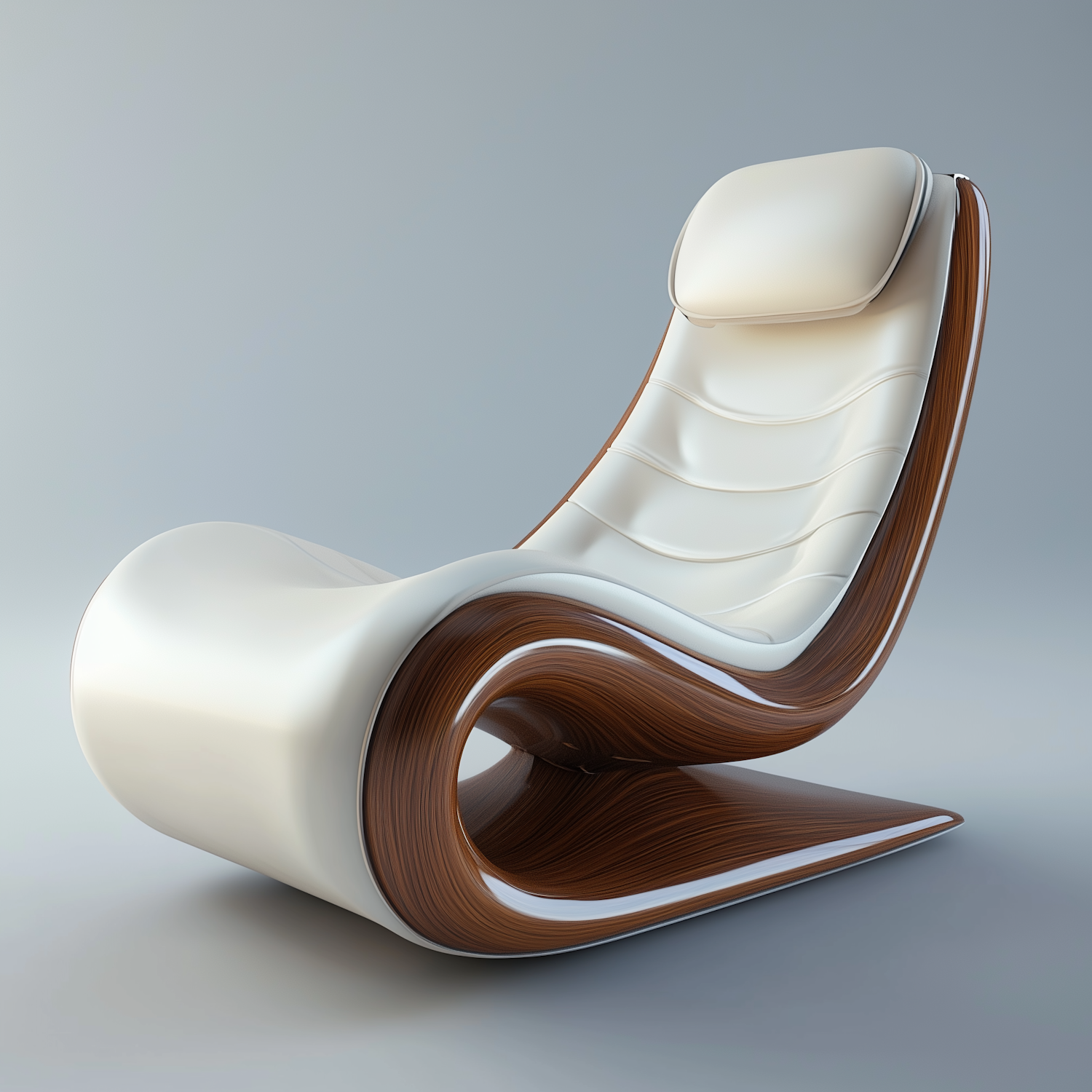 Modern lounge chair with cream upholstery, wood accents, and a sleek, curved design. Perfect for stylish and comfortable interiors.