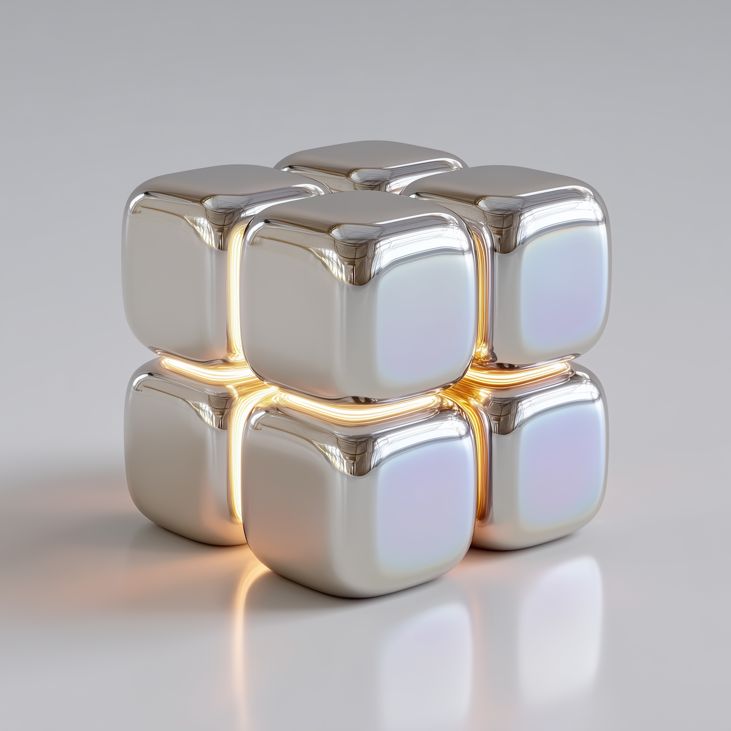A sleek 3D-rendered metallic cube with glowing edges and reflective surfaces, showcasing a futuristic and minimalist design.