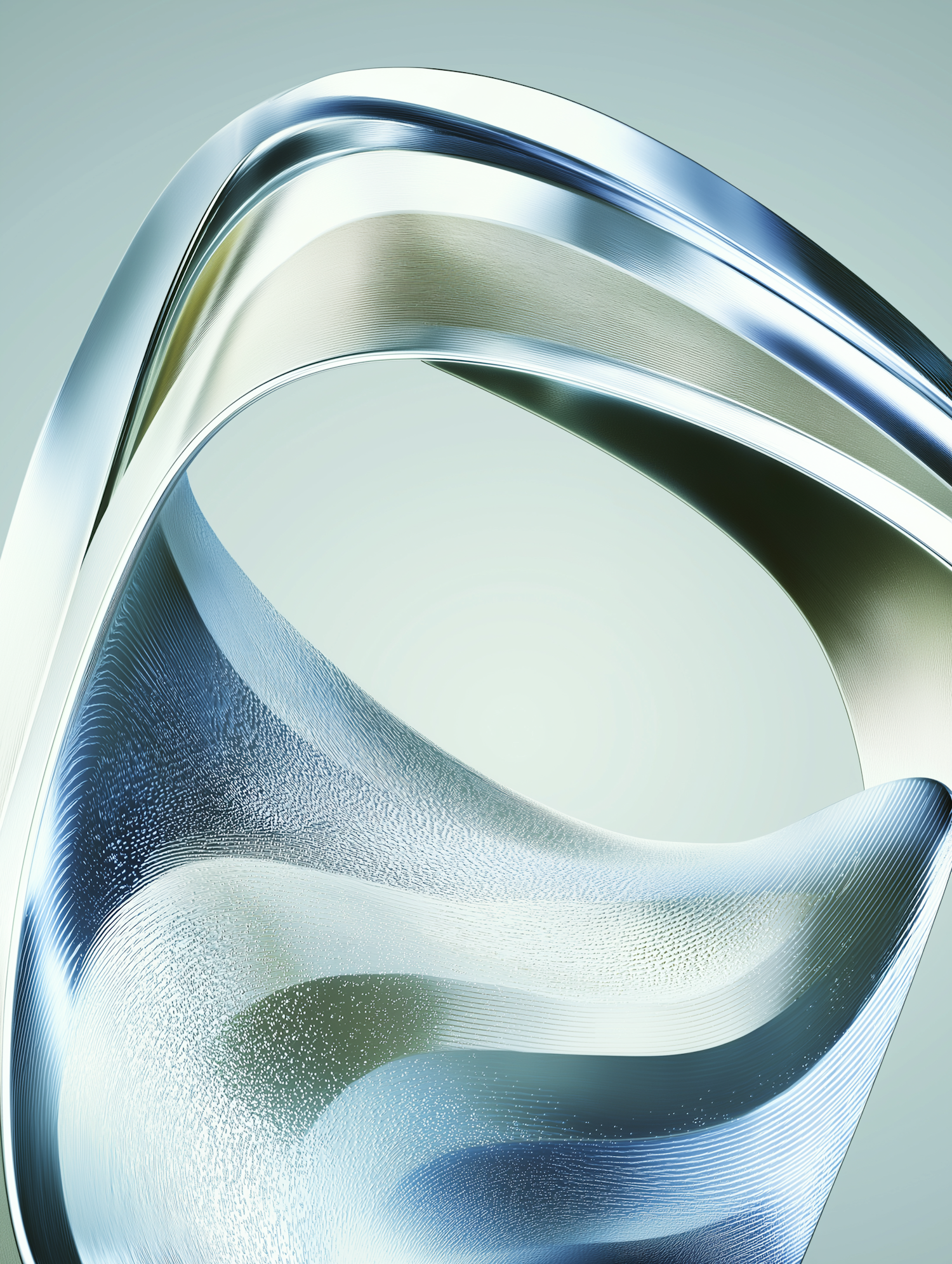Abstract metallic curves in silver and blue tones, creating a sleek and futuristic design with a dynamic and fluid aesthetic.