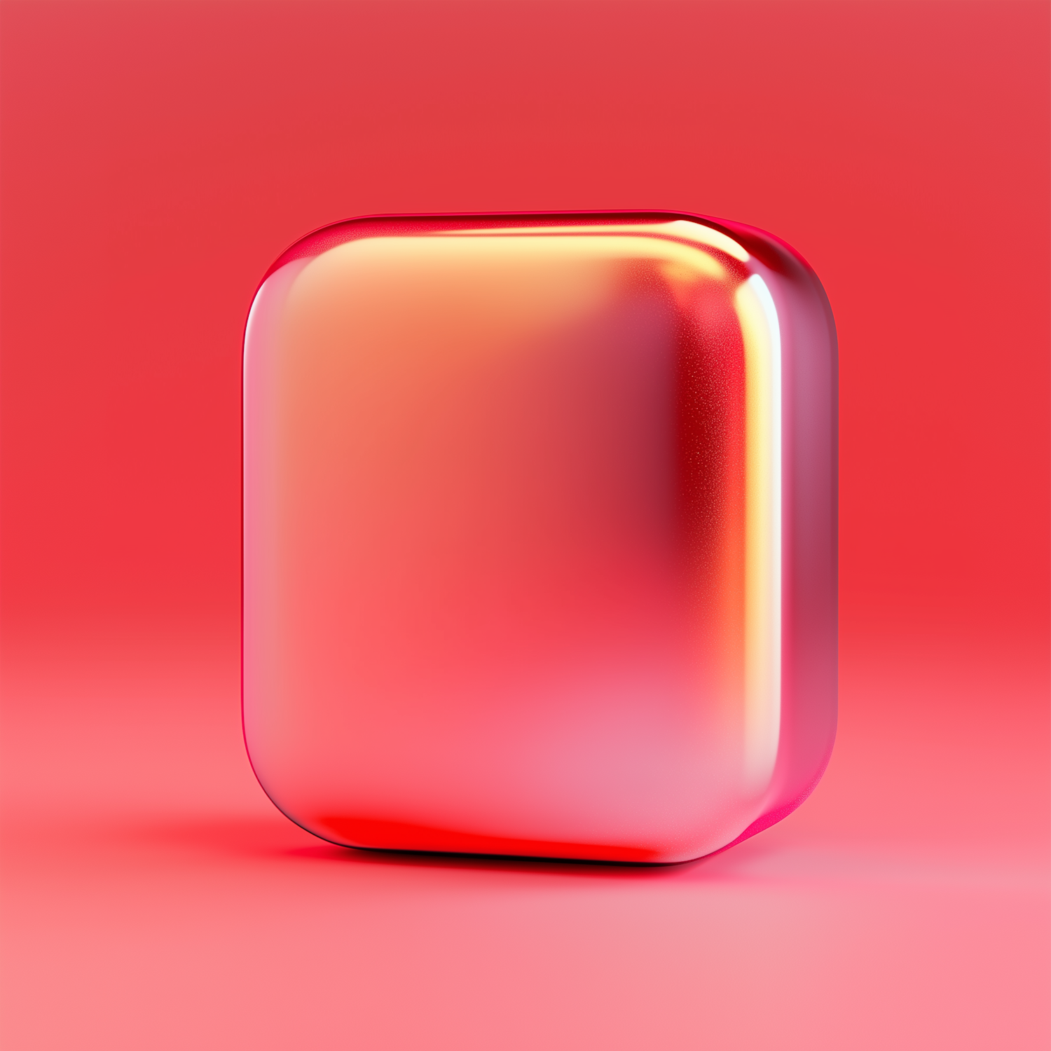Glossy rounded square with a metallic red-orange gradient finish on a vibrant red background, showcasing a sleek and modern design.