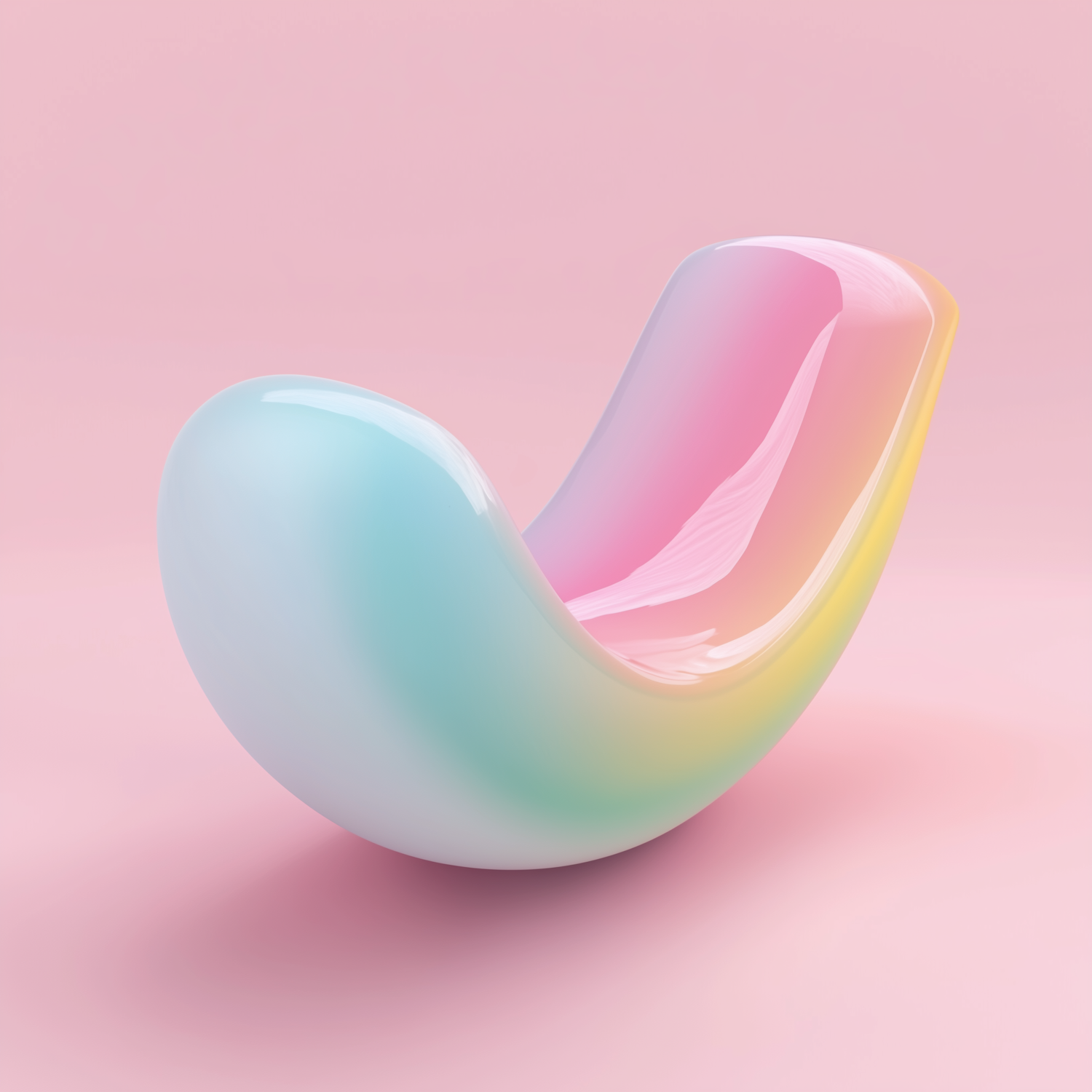A glossy pastel gradient chair with a curved, wave-like design on a soft pink background. Perfect for modern, artistic interiors.