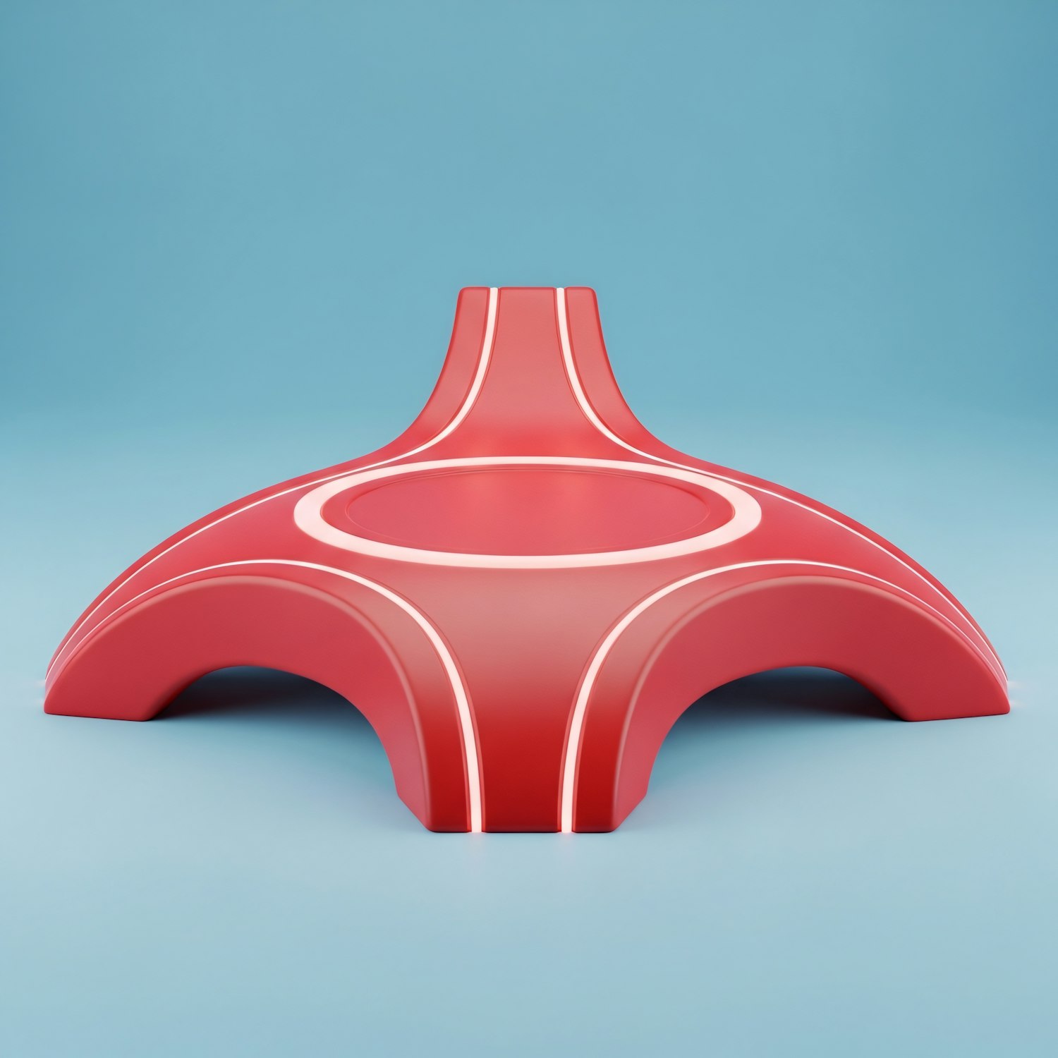 A sleek red structure with glowing white accents on a blue background, showcasing a modern and futuristic design.